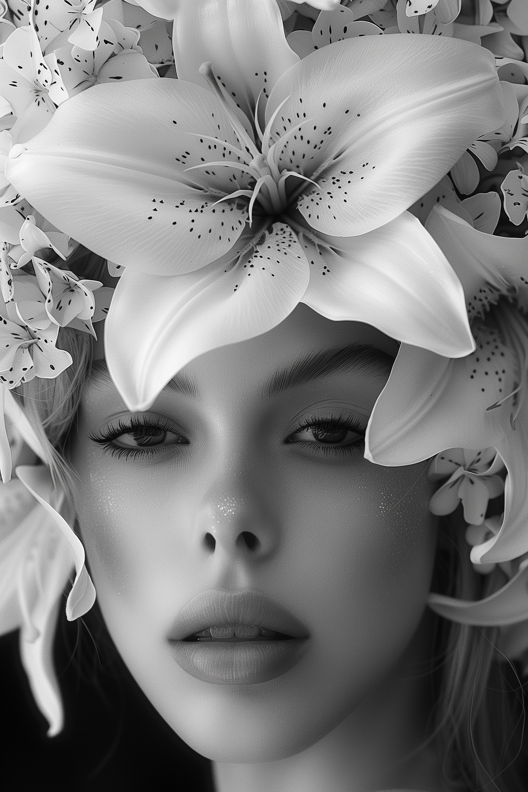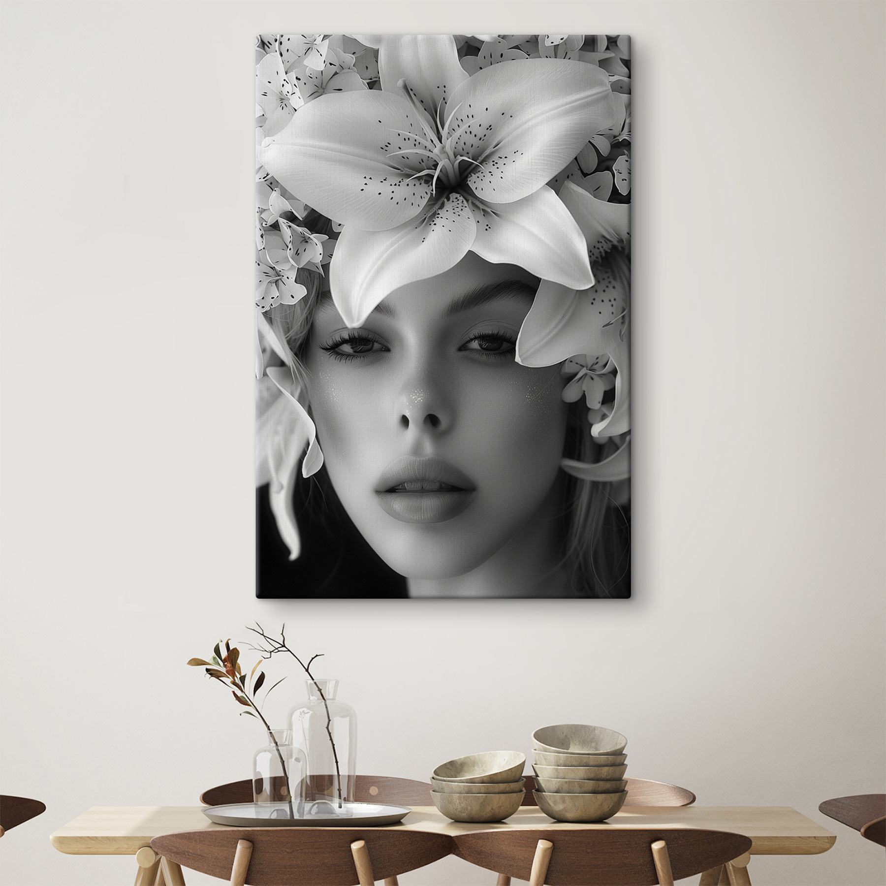 Stellen Sie sich vor, Sie betreten einen Raum und werden von einer beeindruckenden Leinwand begrüßt – “Frau mit Blumen auf dem Kopf”. Es ist nicht nur Kunst, sondern auch ein Gesprächsanlass. Die schwarz-weiße Farbpalette verleiht dem Bild einen Hauch von Eleganz, während die Blumenkrone der Frau einen Hauch von Laune verbreitet. Stellen Sie sich vor, Sie treffen sich mit Freunden zum Kaffee, und alle bewundern und unterhalten sich über ihren heiteren Gesichtsausdruck und diese umwerfenden Blüten. Es ist, als hätte man einen Hauch von Gartenzauber im Haus! Perfekt für Blumenliebhaber und alle, die Schönheit mit einem Hauch von Faszination zu schätzen wissen. Ihre Wände werden es Ihnen danken.