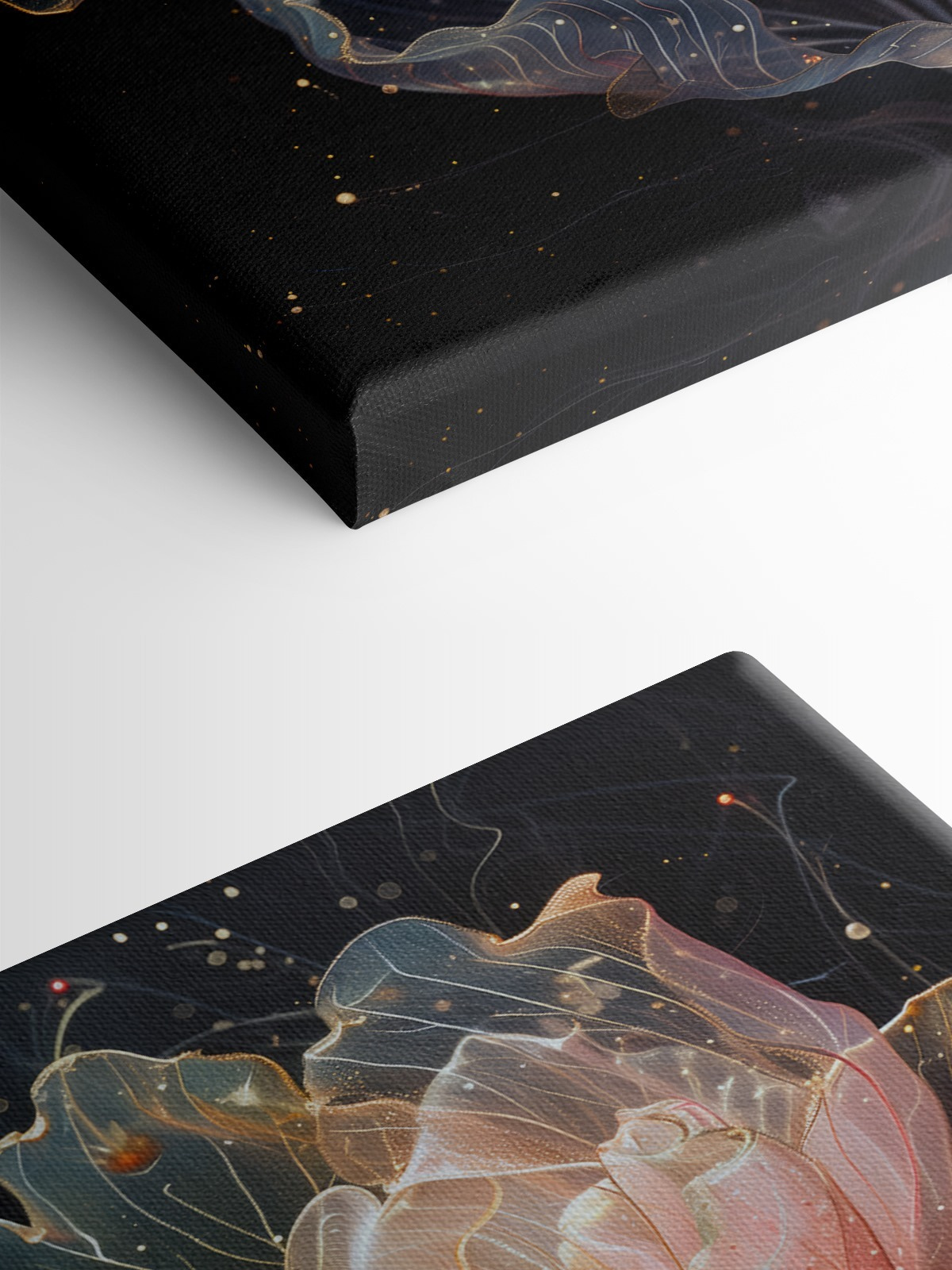 Tauchen Sie mit “Illuminated Bloom in Midnight Waters” in eine verträumte Welt ein. Dieses Leinwandbild ist wie ein nächtliches Gartenabenteuer für Ihre Wände – ein wunderschönes Blumenbild, das in den dunklen Tiefen schwebt. Perfekt für jeden, der sich einen Hauch von Geheimnis und Eleganz in seinem Zimmer wünscht. Stellen Sie sich vor, wie Sie unter einer kuscheligen Decke Tee schlürfen, während diese sanfte Blüte in der Nähe leuchtet. Es ist teils abstrakt, teils Kunst, mit einem Aquarell-Touch, der Kunstliebhaber in Ohnmacht fallen lässt. Es ist, als hätte man ein bisschen Magie dort, wo man sie am wenigsten erwartet.