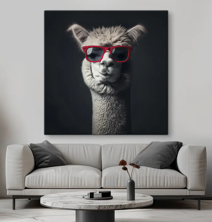 Darf ich vorstellen: ein cooles Lama mit roter Sonnenbrille, das für Gesprächsstoff sorgt. Es ist die perfekte Mischung aus schwarzem und weißem Charme mit einem Hauch von Spaß. Stellen Sie sich vor, wie dieser freche Kerl in Ihrem Wohnzimmer hängt und für ein bisschen Laune und Geheimnis sorgt. Die minimalistische Ausstrahlung ist stilvoll, und die Sonnenbrille? Pures Charisma. Es ist, als hätte man einen stylischen Kumpel, der zu cool für die Schule ist, aber insgeheim gerne ein Lächeln auf die Lippen zaubert. Perfekt für Tierliebhaber und alle, die gerne ein wenig Humor in ihrer Einrichtung haben. Wer hätte gedacht, dass Lamas so einen guten Geschmack haben?