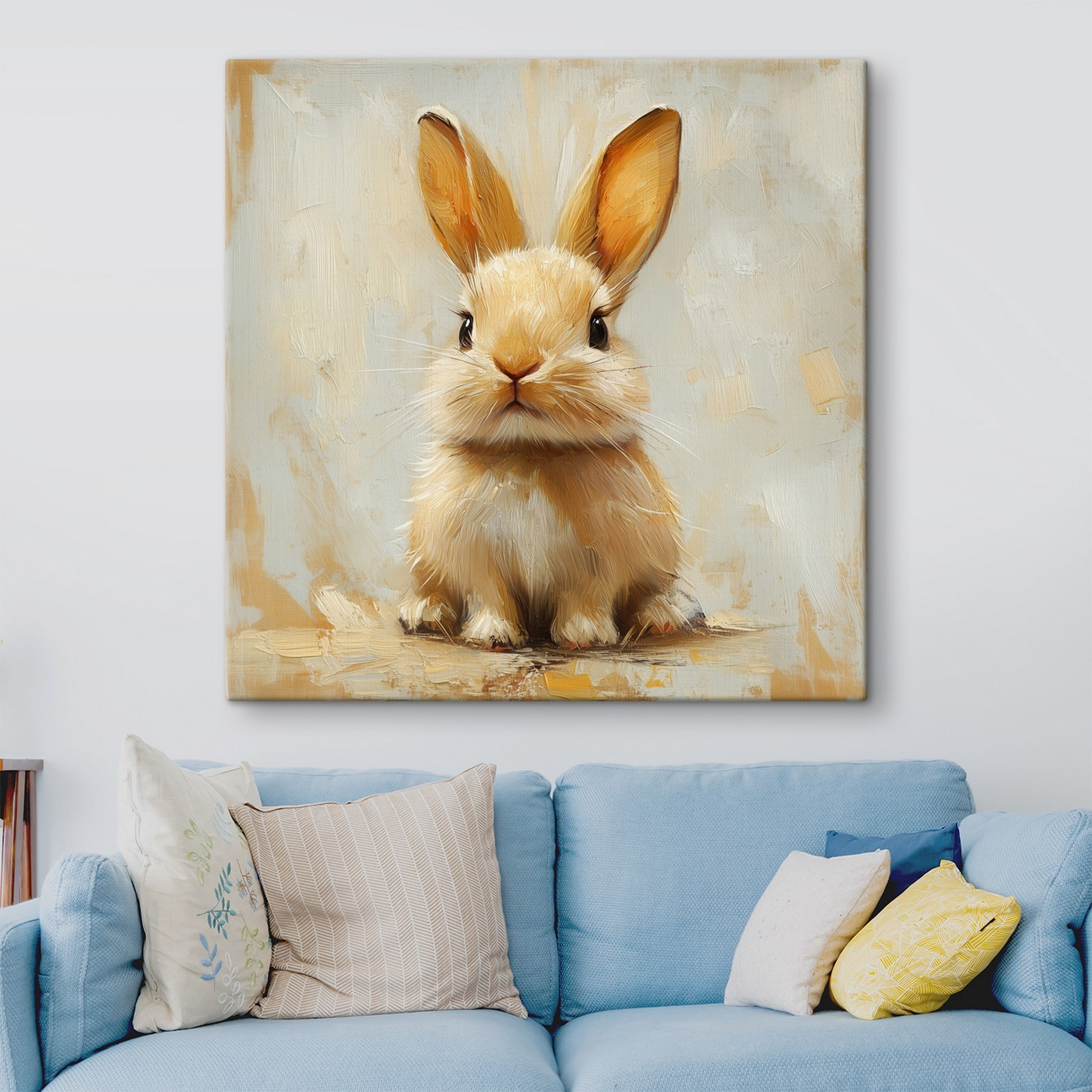 Stellen Sie sich vor, Sie trinken Ihren Morgenkaffee, das Sonnenlicht fällt herein und da ist es – ein flauschiger Hase an Ihrer Wand, der aus dem Hintergrund seiner Leinwand herausschaut, als wolle er sagen: “Hey, bereit für einen herrlichen Tag?” Dieser Druck hat einen skurrilen Charme, der Ihnen jedes Mal ein Lächeln ins Gesicht zaubert, wenn Sie ihn sehen. Perfekt für Leute, die einen Hauch von Naturwärme in ihrer Einrichtung schätzen. Es ist, als hätte man eine weiche, flauschige Wolke der Freude in seinem Zimmer. Und mal ehrlich, wer hätte nicht gerne ein bisschen Kaninchenzauber in seinem Zimmer?