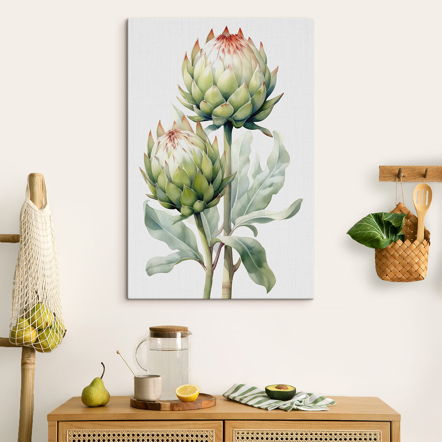 Lernen Sie “Wandbilder Twin Artichokes Basking in Harmony” kennen – ein entzückender Ausbruch der Natur, der sich in Ihr Herz tanzt. Stellen Sie sich diese beiden skurrilen Artischocken vor, die sich in Aquarellfarben gemütlich unterhalten! Dieses Bild mit seinen sanften Grüntönen und dem Hauch von Wärme bringt einen Hauch von Laune in jeden Raum. Stellen Sie es sich in Ihrer Küche vor, wo es Freude und vielleicht auch Lust auf etwas Leckeres macht. Sie ist wie ein sanfter Freund, der den Raum mühelos mit dem Charme der Natur belebt. Perfekt für alle, die ein bisschen Persönlichkeit und einen Hauch von Unerwartetem lieben.