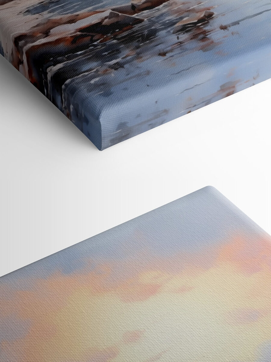Stellen Sie sich vor, dass Sie jedes Mal, wenn Sie einen Raum betreten, eine heitere Flucht erleben. Dieses Leinwandbild zeigt ein charmantes Haus an einem felsigen Ufer, das in das sanfte Licht eines pastellfarbenen Himmels getaucht ist. Es ist, als ob Sie sich den Charme der Küste direkt in Ihr Zuhause holen würden – kein Wellenschlag, nur eine ruhige Atmosphäre. Stellen Sie sich vor, Sie schlürfen Ihren Morgenkaffee, während Sie diese Szene bestaunen. Die Farben sind sanft und doch lebendig, eine Anspielung auf die Schönheit der Natur. Es ist perfekt für alle, die ein kleines Abenteuer lieben, ohne die Couch zu verlassen. Hängen Sie es auf, und lassen Sie die Tagträume beginnen!