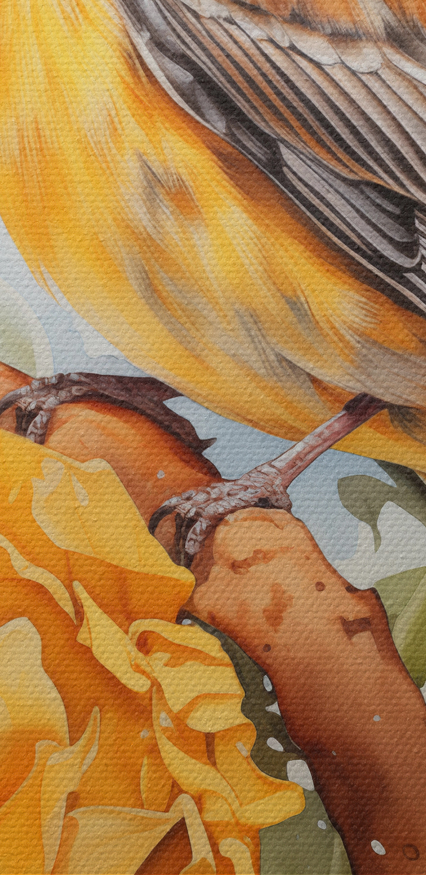 Holen Sie sich einen Hauch von Natur ins Haus mit diesem bezaubernden Leinwandbild eines Vogels, der auf einem Ast sitzt, umgeben von leuchtenden Blumen. Stellen Sie sich das Bild in einem gemütlichen Wohnzimmer oder sogar in einer fröhlichen Küche vor – es ist, als ob Sie sich ein wenig Ruhe im Freien in Ihr Zuhause holen. Die sanften Farben und das lebendige Design schaffen eine warme, einladende Atmosphäre, perfekt für Momente, in denen man einen Hauch von Freude braucht. Stellen Sie sich vor, Sie nippen an Ihrem Morgenkaffee, während Sie diese helle Szene betrachten; es ist wie ein kleiner Moment des Glücks, jedes Mal wenn Sie hinüberschauen. Eine schöne Erinnerung daran, dass Schönheit überall ist!