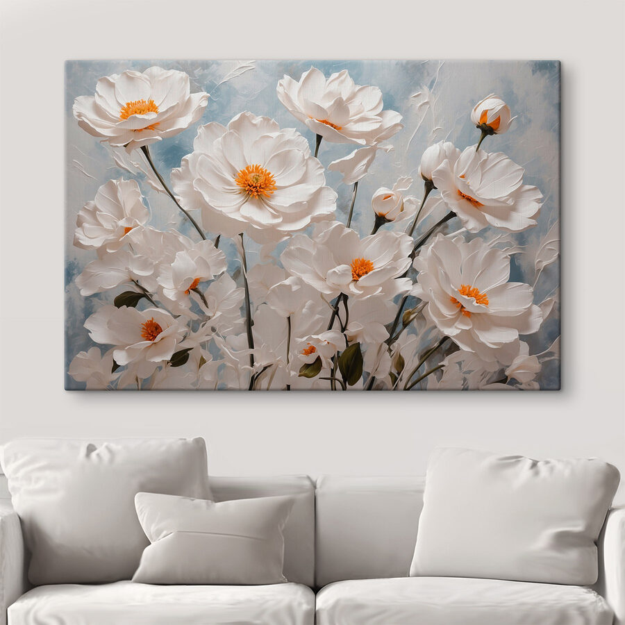 Stellen Sie sich vor, Sie wachen mit einem Blumenstrauß auf, der nie verwelkt – das ist “Wandbilder Group of White Flowers”. Es ist wie eine sanfte Morgenbrise, eingefangen auf Leinwand. Elegant und doch unaufdringlich bringen diese Blüten einen Hauch von Natur direkt in Ihr Wohnzimmer. Perfekt für die Momente, in denen Sie einen mentalen Spaziergang durch einen Garten brauchen, aber im Haus festsitzen. Hängen Sie sie auf und spüren Sie die kühle Gelassenheit, die sie ausstrahlt, als würde sie flüstern: “Entspann dich, alles wird gut.” Eine ewige Blüte, ohne die lästigen Pollen.