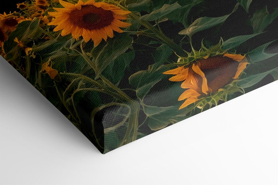 Gestalten Sie Ihren Raum mit diesem lebendigen Leinwandbild, das ein Sonnenblumenfeld vor majestätischen Bergen zeigt. Stellen Sie sich die Wärme eines sommerlichen Sonnenuntergangs vor, der sich über die Landschaft legt und jede einzelne Blüte in ein sanftes Licht taucht. Es ist, als hätten Sie ein kleines Stück Natur direkt an Ihrer Wand! Perfekt für ein gemütliches Wohnzimmer oder eine fröhliche Küche, lädt dieses Stück zu ruhigen Schwingungen und sonnigen Gedanken ein. Ihre Freunde werden Sie vielleicht sogar fragen, ob Sie mit der Gartenarbeit begonnen haben! Wundern Sie sich nicht, wenn es zum Blickfang wird, der jeden Raum erhellt und jeden Tag ein bisschen besonderer macht.