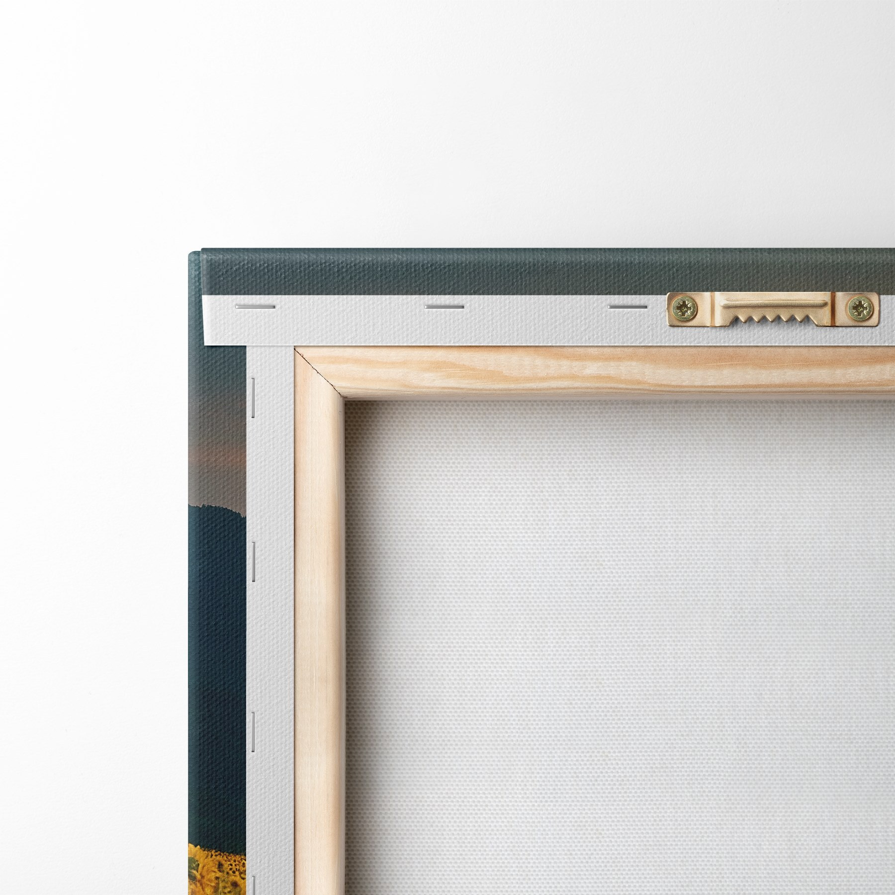 Gestalten Sie Ihren Raum mit diesem lebendigen Leinwandbild, das ein Sonnenblumenfeld vor majestätischen Bergen zeigt. Stellen Sie sich die Wärme eines sommerlichen Sonnenuntergangs vor, der sich über die Landschaft legt und jede einzelne Blüte in ein sanftes Licht taucht. Es ist, als hätten Sie ein kleines Stück Natur direkt an Ihrer Wand! Perfekt für ein gemütliches Wohnzimmer oder eine fröhliche Küche, lädt dieses Stück zu ruhigen Schwingungen und sonnigen Gedanken ein. Ihre Freunde werden Sie vielleicht sogar fragen, ob Sie mit der Gartenarbeit begonnen haben! Wundern Sie sich nicht, wenn es zum Blickfang wird, der jeden Raum erhellt und jeden Tag ein bisschen besonderer macht.