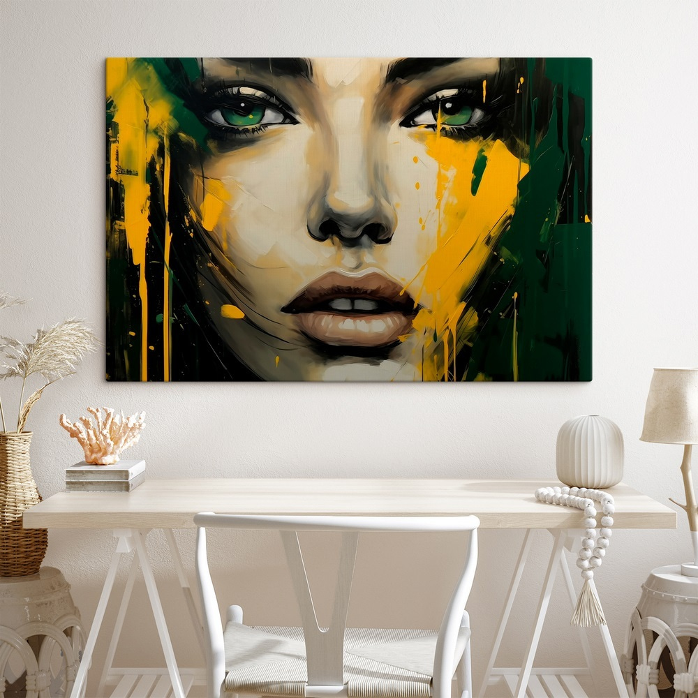 Tauchen Sie ein in die Welt der leuchtenden Farben und intensiven Emotionen mit diesem “Leinwanddruck Gemälde eines Frauengesichts”. Es ist kein durchschnittliches Wandgemälde – es ist so, als würde man in einen wunderschönen, chaotischen Traum blicken. Ihre Augen scheinen Ihnen zu folgen, nicht wahr? Perfekt für kahle Wände, die ein wenig Gesprächsstoff brauchen. Ein Blick auf das Bild genügt, um sich in Tagträumen zu ertappen oder beim morgendlichen Kaffee über die Geheimnisse des Lebens nachzudenken. Wer hätte gedacht, dass ein Farbklecks und ein fesselnder Blick so viel bewirken können? Hängen Sie es auf, bewundern Sie es, lassen Sie es Ihren Tag verzaubern.