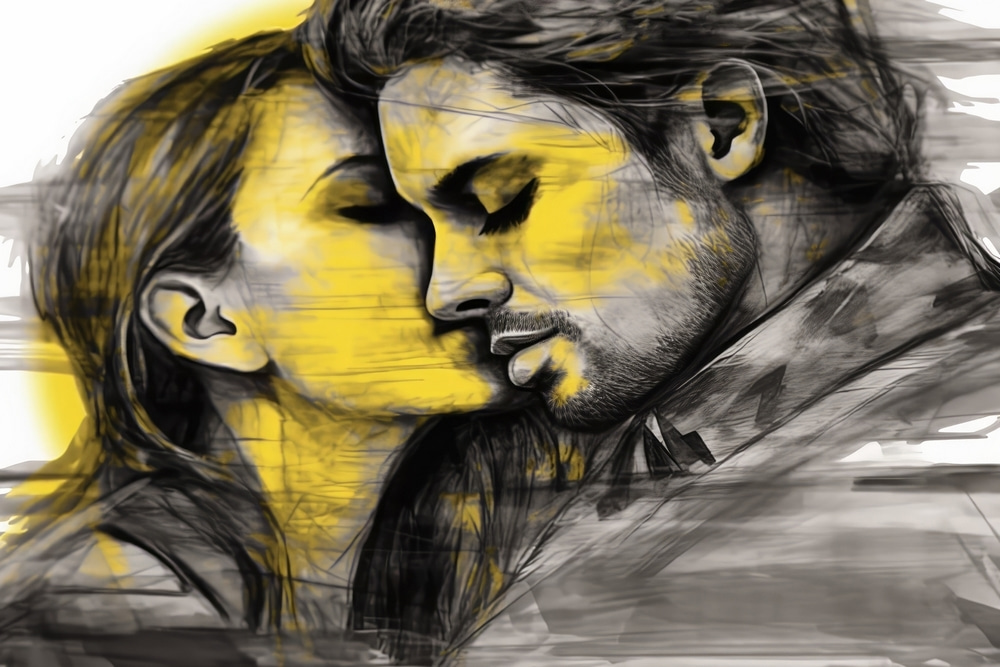 Dieser Leinwanddruck “Mann und Frau küssen sich” ist wie ein Flüstern von Romantik, eingefangen in Schwarz und Weiß, mit einem Spritzer Gelb, der ein wenig Pepp verleiht. Stellen Sie sich vor, dass dieses Bild in Ihrem Wohnzimmer hängt – eine tägliche Erinnerung an diese herzliche Verbindung, als ob Sie einen süßen Moment ohne den PDA einfangen würden. Der abstrakte Stil verleiht ihm einen zeitlosen Charakter, der Eleganz mit einem Hauch von Geheimnis verbindet. Es ist gemütlich und doch schick, perfekt, um Gespräche anzuregen oder Ihrer Lieblingsecke Wärme zu verleihen. Ein Stück, das sich wie eine Umarmung anfühlt – kühn und doch zart.