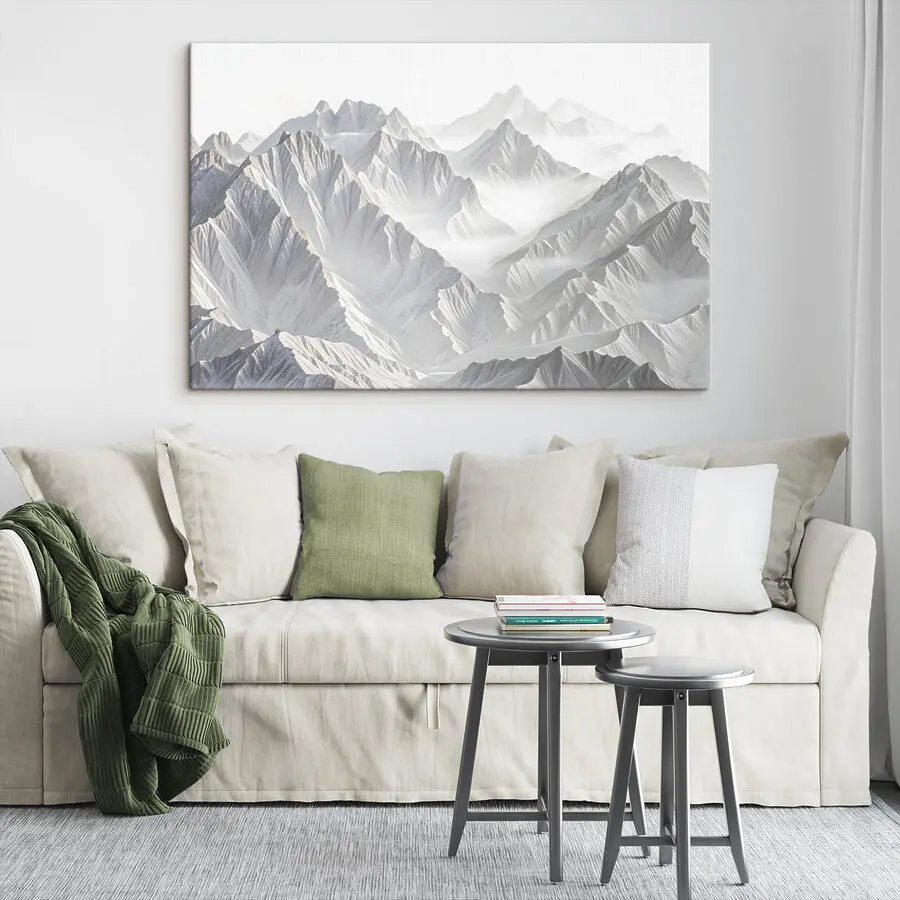 Stellen Sie sich vor, Sie stehen mit diesem atemberaubenden Bild vor Ihrem Fenster und hören fast das Flüstern des Windes über diesen majestätischen, verschneiten Gipfeln. Der Druck “Snowy Mountain Range with Clouds” fängt die ganze ruhige Schönheit einer frostigen Wildnis ein – nur ohne Erfrierungen. Perfekt für alle, die von epischen Abenteuern träumen, aber eine gemütliche Couch zu schätzen wissen. Eine faszinierende Mischung aus minimalistischer und von der Natur inspirierter Kunst, die einen Hauch von frischer Bergluft in Ihren Raum bringen wird. Auch ein toller Gesprächsanlass – ideal für träumerische Nachmittage oder gemütliche Momente in der Dämmerung!