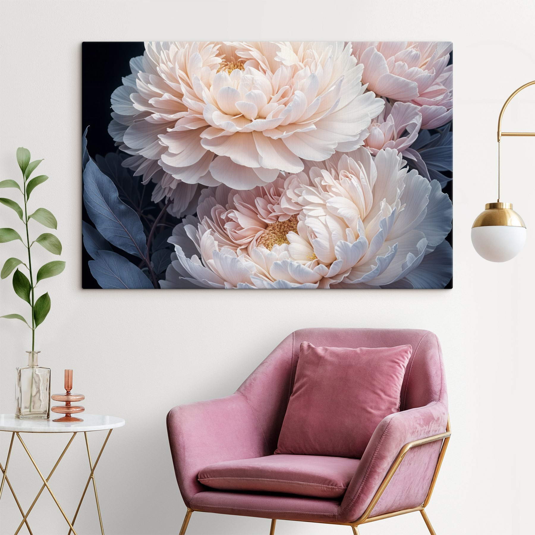 Haben Sie jemals davon geträumt, durch einen Garten zu gehen, in dem die Blütenblätter Geheimnisse der Ruhe flüstern? “Pale Petals in Soft Embrace” fängt diesen glücklichen Moment perfekt ein. Stellen Sie sich vor, dass dieses Bild Sie jeden Tag begrüßt und Ihren Raum mit sanften Creme- und Rougetönen erhellt – es ist wie eine warme, blumige Umarmung. Perfekt für Blumenliebhaber oder alle, die sich nach einem Hauch von Natur in ihren Räumen sehnen. Außerdem passt er überall hin – ins Wohnzimmer, ins Schlafzimmer oder in die kleine Leseecke. Eine wunderbare Flucht aus dem Alltag, direkt an Ihrer Wand.