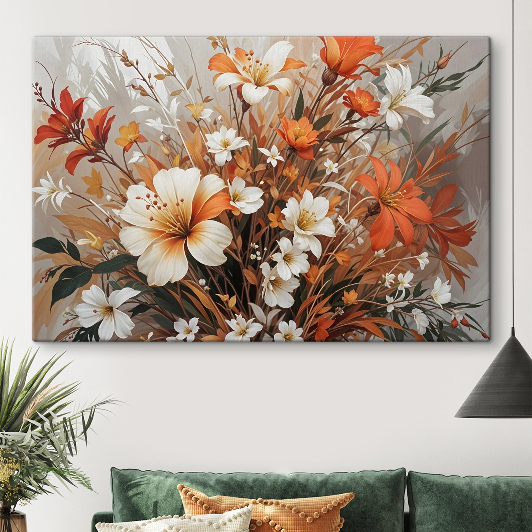 Stellen Sie sich einen Hauch von Natur direkt an Ihrer Wand vor – dieser Leinwanddruck “Blumenstrauß” ist ein Wirbel aus Farben und Ruhe, wie ein sanfter Tagtraum. Perfekt, um Ihrem Raum einen Hauch von künstlerischem Charme zu verleihen. Es ist, als würden die Blumen ein Geheimnis teilen, das nur sie kennen. Diese sanften Aquarelltöne – flüstern sie nicht einfach warme Sommergefühle? Stellen Sie sie in eine gemütliche Ecke, vielleicht neben einen bequemen Sessel, und lassen Sie sie dem Raum neues Leben einhauchen. Ideal für Tagträumer und Pflanzenliebhaber gleichermaßen!