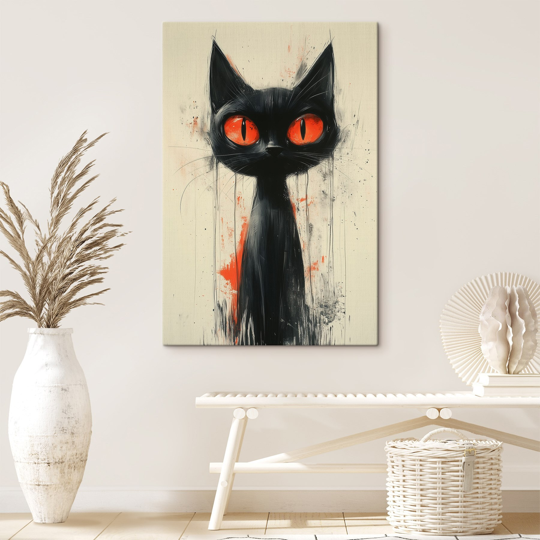 Bringen Sie einen Hauch von Geheimnis in Ihren Raum mit diesem auffälligen Leinwanddruck einer schwarzen Katze mit feuerroten Augen. Es ist, als würde ein kleiner Wächter der Geheimnisse über Ihr Zimmer wachen, bereit, Ihre Neugierde zu wecken. Stell dir vor, du kommst nach einem langen Tag nach Hause, wirfst deine Jacke beiseite und wirst von diesen fesselnden Augen begrüßt. Das ist nicht nur ein Kunstwerk, sondern auch ein Gesprächsanlass! Perfekt für Liebhaber des Ungewöhnlichen oder für alle, die eine einzigartige Note in ihrer schwarz-weißen Einrichtung suchen. Ein Hauch von Laune, um Ihren Tag zu erhellen (oder zu erschrecken)!