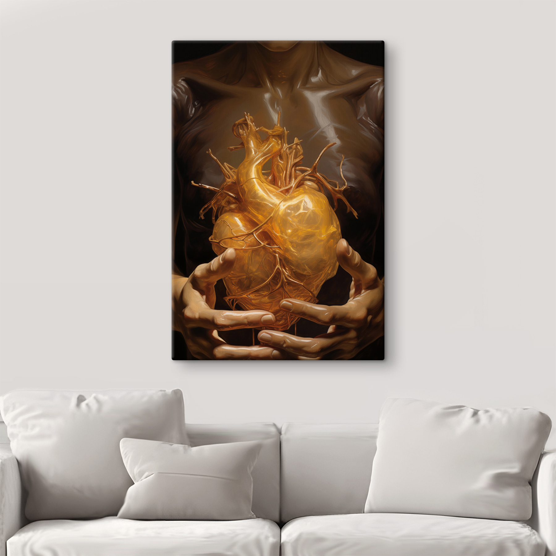 Stellen Sie sich einen ruhigen Abend in Ihrem Wohnzimmer vor. Sie haben sich gerade auf der Couch niedergelassen, als Ihr Blick auf diesen faszinierenden Leinwanddruck fällt – mit dem Titel “Person holding a human heart”. Das ist keine gewöhnliche Kunst. Nein, Sir. Es ist abstrakt und doch zutiefst menschlich und regt zu Gesprächen und Neugierde an. Die Farben und das Gefühl, etwas so Lebendiges in den Händen zu halten, verleihen Wärme und vielleicht auch einen Hauch von Geheimnis. Perfekt für alle, die Kunst mögen, die sie zum Nachdenken anregt, oder auch nur etwas, das ein bisschen… herzerwärmend ist.
