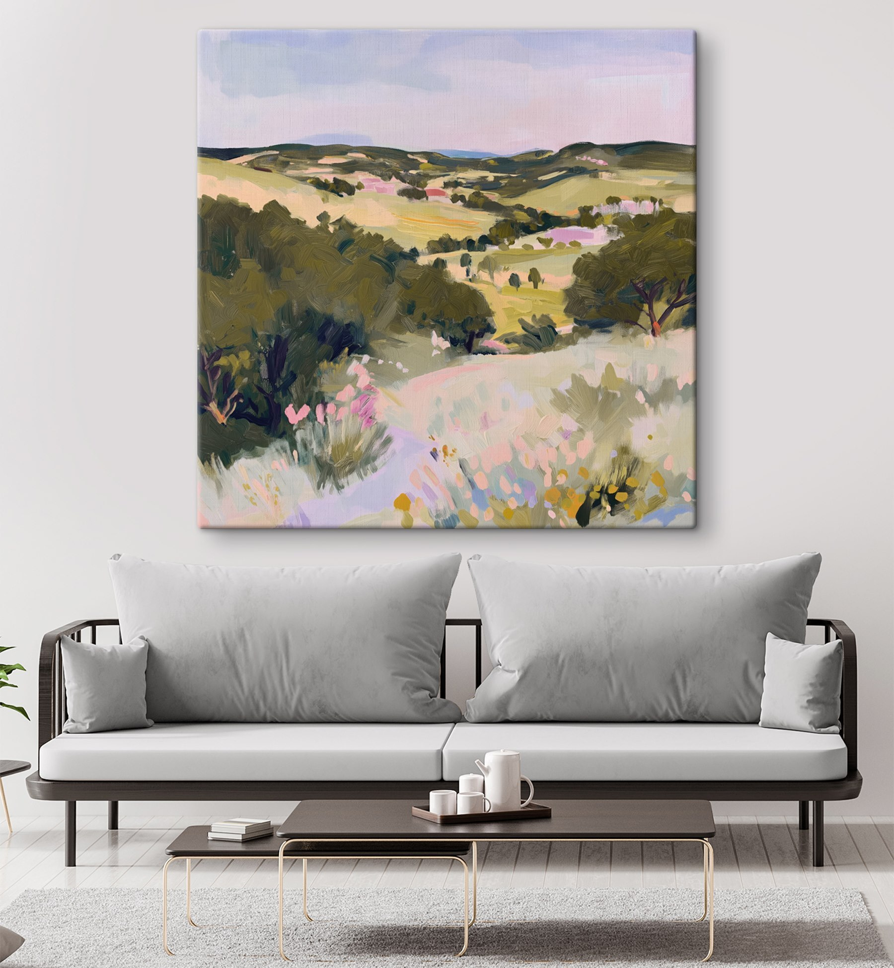 Stellen Sie sich vor, Sie wachen mit einem Kaffee in der Hand auf und sehen diesen atemberaubenden Leinwanddruck – eine friedliche Landschaft mit sanften Hügeln und rauschenden Bäumen. Es ist wie ein Hauch von frischer Luft im Haus, der Ihrem Raum eine heitere Atmosphäre verleiht. Die sanften Grüntöne und das Pastellrosa laden geradezu zu einem imaginären Spaziergang ein. Es ist nicht einfach nur Kunst, sondern ein kleiner Urlaub an Ihrer Wand. Perfekt für Tagträumer oder alle, die dem Alltag entfliehen wollen, ohne den Raum zu verlassen. Ihre Kuschelecke hat soeben ihren Seelenverwandten gefunden!
