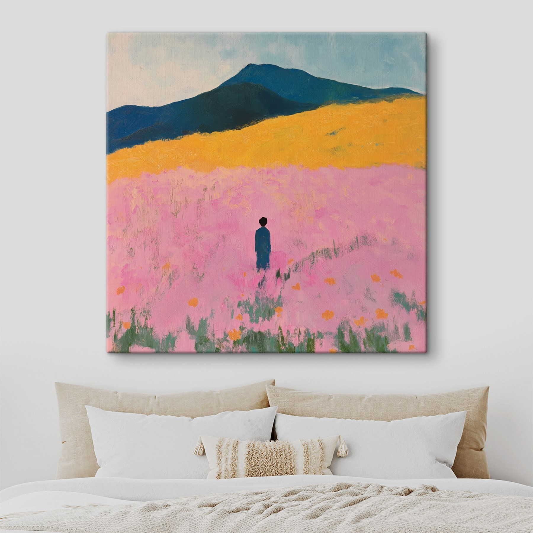 Stellen Sie sich vor: ein friedlicher Tagtraum, festgehalten auf Leinwand. “Person, die in einem Blumenfeld steht” ist nicht nur Wandkunst – es ist eine Flucht. Stellen Sie es sich vor. Das ruhige, sanfte Rascheln von Blütenblättern in einer Sommerbrise, alles in atemberaubenden Farben. Diese einsame Gestalt wird sofort zu einem Menschen, der einen Moment der Ruhe sucht. Es ist wie eine sanfte Umarmung für Ihre Wände. Perfekt für jeden, der täglich daran erinnert werden möchte, innezuhalten und durchzuatmen. Außerdem ist es vielleicht schöner als der Garten Ihres Nachbarn!