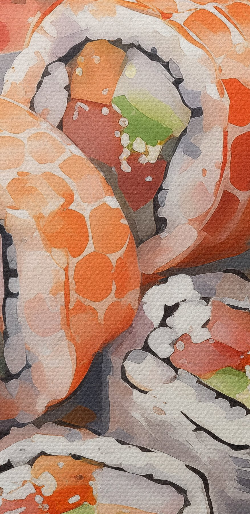 Stellen Sie sich Folgendes vor: Sie gehen in Ihre Küche, und zack – da ist sie, eine Leinwand, die Ihnen praktisch zuflüstert: “Sushi gefällig?” Der Leinwanddruck “Teller mit Sushi und Soße” wirkt wie ein kleiner Zen-Garten an Ihrer Wand. Diese zarten Röllchen sehen fast zu schön aus, um sie zu essen, aber machen sie nicht einfach Lust auf einen Sushi-Abend? Die Subtilität der Natur, gemischt mit den beliebtesten mundgerechten Köstlichkeiten – das ist wie eine raffinierte Dinnerparty, nur ohne das Aufräumen. Dieses Kunstwerk eignet sich perfekt, um jedem Raum einen Hauch von Geschmack zu verleihen, und wird mit Sicherheit für köstliche Gespräche sorgen.