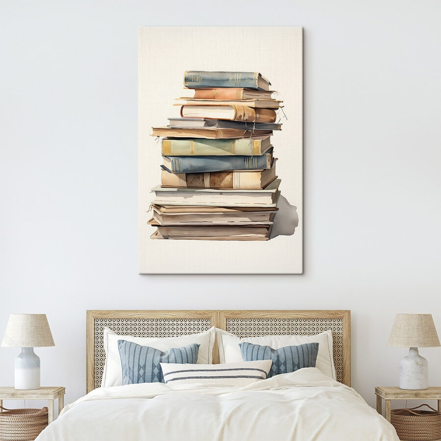 Verwandeln Sie eine leere Wand in eine gemütliche Leseecke mit diesem charmanten Aquarell-Leinwanddruck eines Bücherstapels. Es ist, als ob Sie sich eine Bibliothek in Ihr Wohnzimmer holen würden – nur ohne die überfälligen Gebühren! Stellen Sie sich vor, wie das sanfte Nachmittagslicht in Ihr Zimmer fällt, während Sie an Ihrem Tee nippen und einen Hauch von Nostalgie verspüren. Jedes Buch scheint Geschichten zu flüstern, die darauf warten, entdeckt zu werden, und lädt jeden ein, in eine neue Welt einzutauchen. Dieses Kunstwerk ist perfekt für Bücherliebhaber oder alle, die sich nach einem Hauch von Wärme in ihrem Raum sehnen, denn es verleiht Persönlichkeit, ohne zu auffällig zu sein. Ein zeitloses Werk, das zu Gesprächen anregt und vielleicht sogar zu einem nächtlichen Lesevergnügen inspiriert!