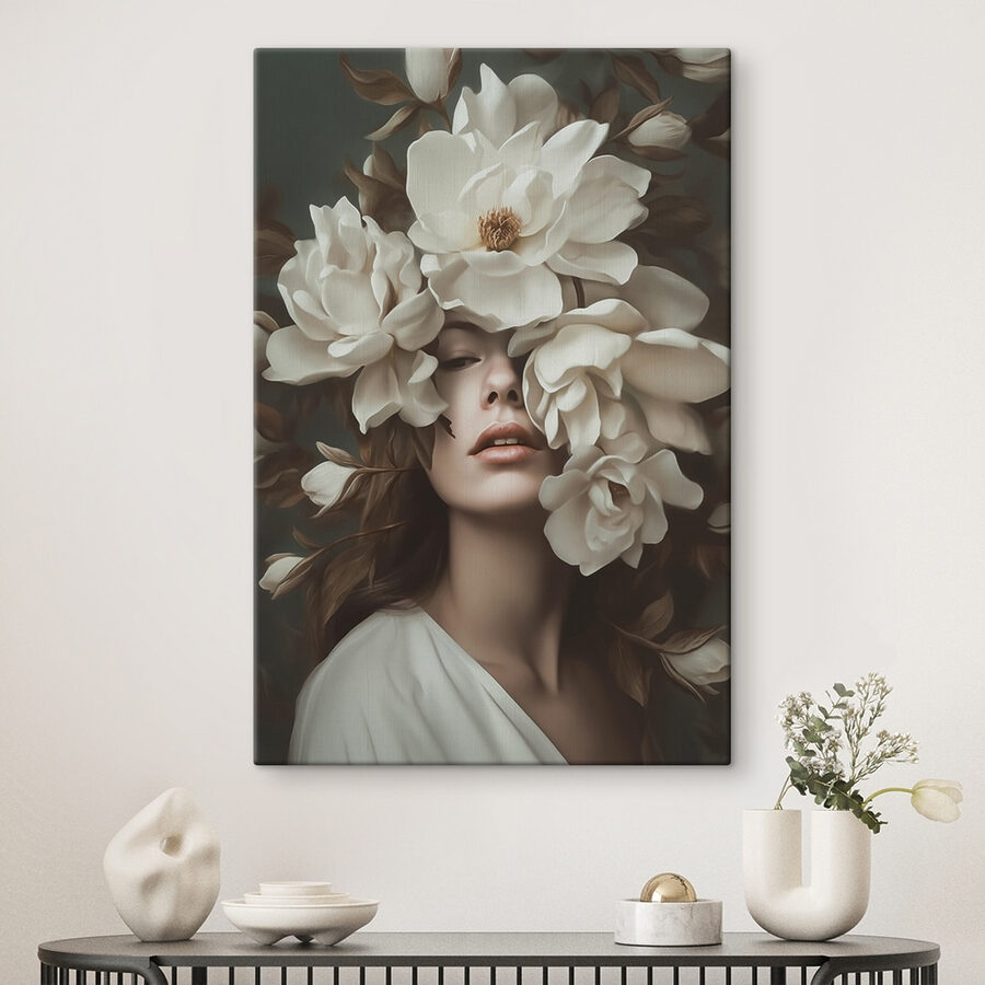 Verwandeln Sie Ihren Raum mit diesem atemberaubenden Leinwanddruck! Stellen Sie sich eine heitere Präsenz vor, gefüllt mit zarten Blumen, die das Gesicht einer lieblichen Figur einhüllen und Wärme und Ruhe ausstrahlen. Es ist, als hätte die Natur Geheimnisse geflüstert und sie in einem wunderschönen Blumenstrauß geteilt. Bei diesem Kunstwerk geht es nicht nur um das Aussehen – es ist wirklich eine Emotion, die in Blütenblätter gehüllt ist und Gefühle von Frieden und Frische hervorruft. Ob über Ihrer gemütlichen Leseecke oder in einem lebhaften Flur aufgehängt, es lädt zu einem Gefühl der Ruhe ein. Perfekt für Blumenliebhaber oder alle, die sich nach einem Hauch von Naturschönheit sehnen. Ihre Wände werden es Ihnen danken!