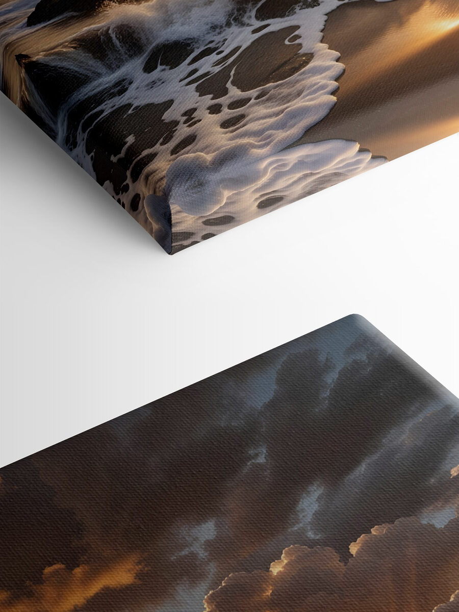 Stellen Sie sich vor, Sie kommen nach Hause und sehen einen farbenfrohen Sonnenuntergang, der Ihre Wände in warme Farben taucht, und ein ruhiges Gewässer, das diese friedliche Stimmung ins Haus bringt. Dieser Leinwanddruck fängt die Magie der Natur ein, wo der Sonnenuntergang auf das Meer trifft. Stellen Sie sich vor, wie Sie sich mit einer Tasse Tee zurücklehnen und das Gefühl haben, direkt am Strand zu sein, während die Wellen sanft an das Ufer schlagen. Es ist wie ein Mini-Urlaub von zu Hause aus! Dieses Kunstwerk eignet sich perfekt für jeden Raum, der einen Hauch von Ruhe braucht, und lädt zu Tagträumen, Entspannung und einem Hauch von Fernweh ein – alles verpackt in einer atemberaubenden visuellen Umarmung. Es ist nicht nur eine Dekoration, es ist ein Stimmungsaufheller!