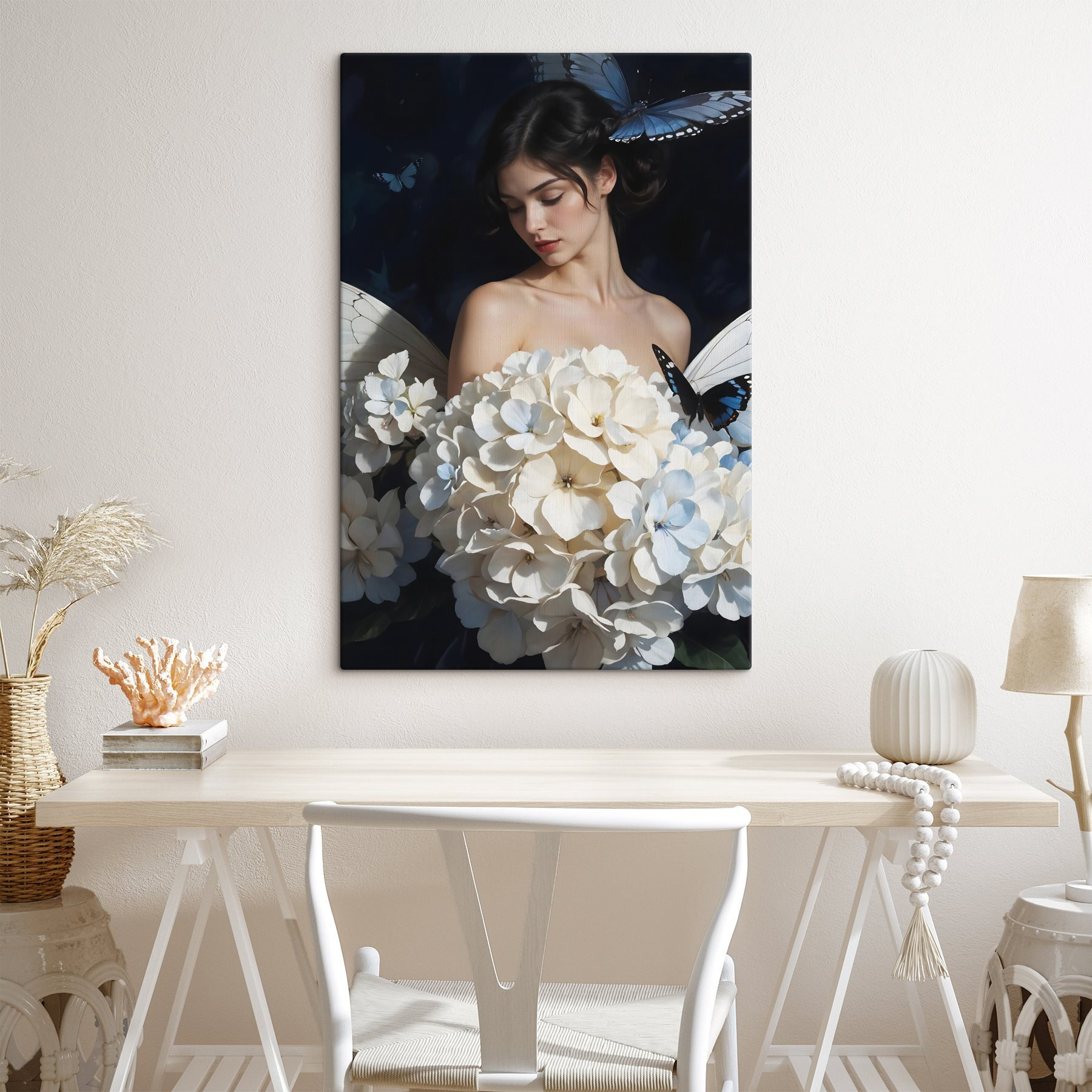 Stellen Sie sich einen Moment vor, in dem Natur und Eleganz aufeinanderprallen, eingefangen in diesem faszinierenden Leinwanddruck. Eine ruhige Frau, umgeben von zarten Blumen und bezaubernden Schmetterlingen, bringt einen Hauch von frischer Luft in jeden Raum. Es ist, als hätte man einen friedlichen Garten direkt an der Wand. Die sanften Farbtöne und anmutigen Details verleihen dem Bild einen beruhigenden Touch, perfekt für eine gemütliche Leseecke oder den Platz, an dem Sie Ihren Morgenkaffee schlürfen. Ein Blick darauf und Sie werden sich ein wenig leichter fühlen – so als ob die Schmetterlinge einfach von der Leinwand flattern würden! Dieses Stück ist nicht nur Dekoration, sondern auch eine tägliche Erinnerung an Schönheit und Ruhe.