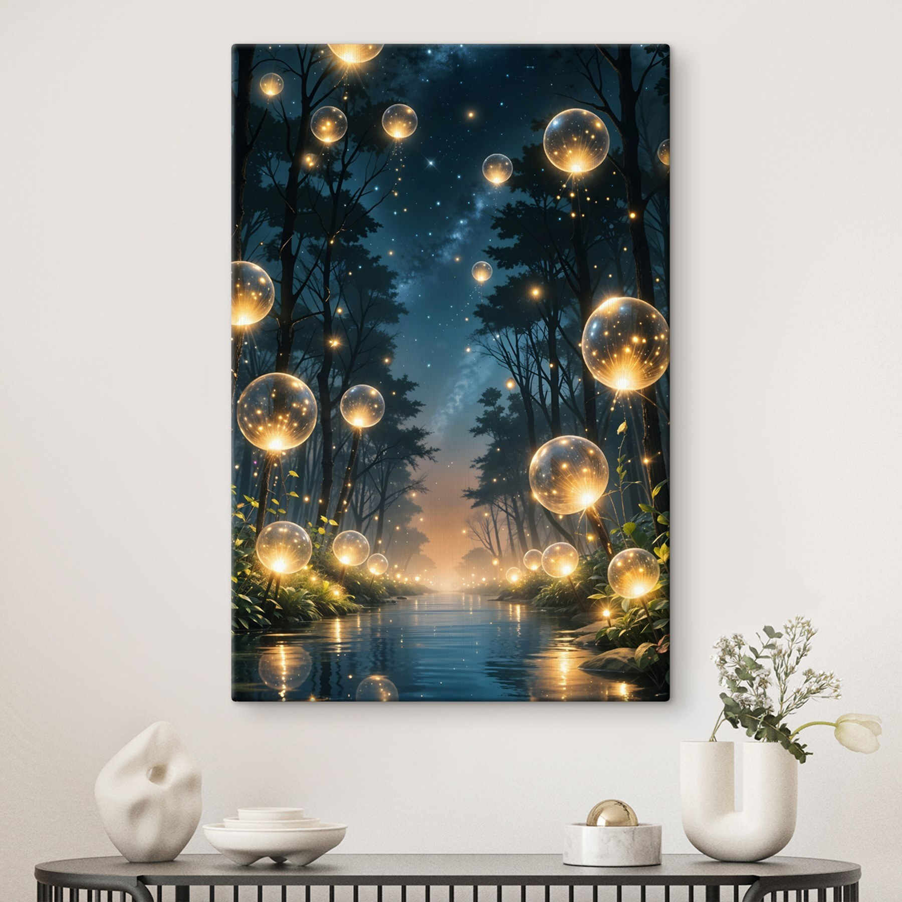 Treten Sie ein in eine Welt, in der leuchtende Seifenblasen zwischen den Bäumen tanzen und so eine wundersame Flucht ermöglichen. Dieser Leinwanddruck “Glowing Bubbles in a Forest” lädt Sie dazu ein, sich einen ruhigen Abendspaziergang vorzustellen, bei dem sich die leisen Geräusche der Natur mit dem sanften Leuchten um Sie herum vermischen. Es fühlt sich an wie ein Märchen, das sich direkt in Ihrem Wohnzimmer abspielt. Die Aquarelltöne umhüllen Sie mit Wärme und machen jeden Raum einladend. Perfekt für alle, die sich vom Charme der Natur verzaubern lassen oder einfach nur ein bisschen träumen wollen. Hängen Sie es auf und lassen Sie Ihre Wände sprechen – vielleicht fragen Sie Ihre Gäste sogar, ob es ein geheimes Portal ist!