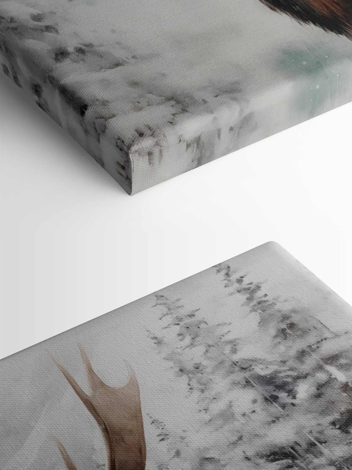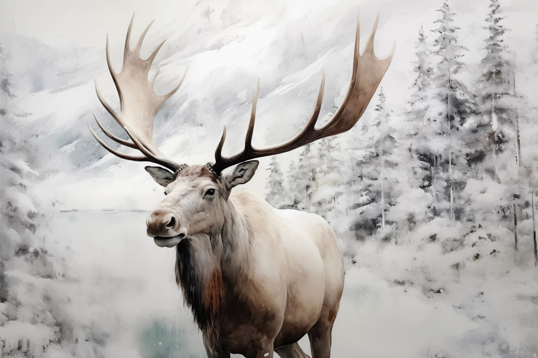 Stellen Sie sich eine gemütliche Winterszene vor, direkt in Ihrem Wohnzimmer – ohne Handschuhe. Dieser Leinwanddruck eines majestätischen Elchs, der stolz sein Geweih zur Schau stellt, führt Sie direkt in einen verschneiten Wald. Es ist wie ein Hauch von Natur ohne Frostbeulen. Perfekt für alle, die den Ruf der Wildnis lieben, aber die Wärme ihres Zuhauses vorziehen. Machen Sie es sich also mit einem heißen Kakao gemütlich und lassen Sie diesen Elch einen Hauch von Abenteuer in Ihren Raum bringen. Er ist ein bisschen wild, ein bisschen heiter und total magisch.