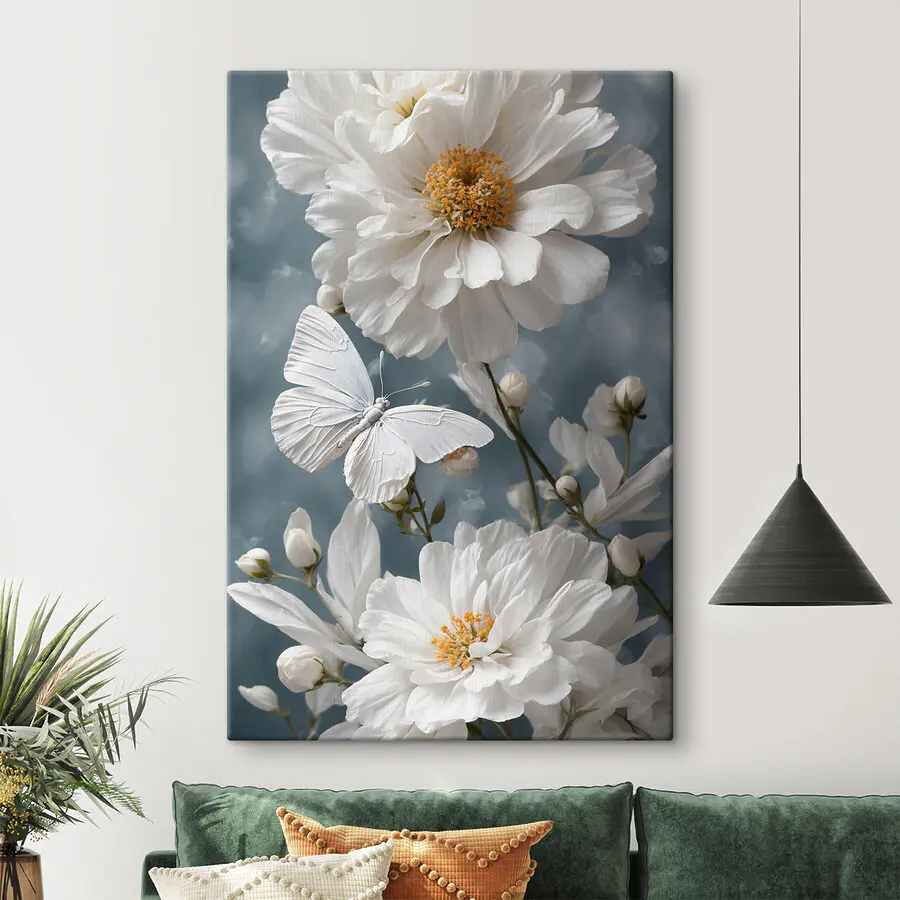 Verwandeln Sie jede Wand in ein Stück Natur mit diesem bezaubernden Leinwandbild, das einen zarten Schmetterling auf einer zarten Blüte zeigt. Es ist, als ob Sie sich ein Stückchen Natur in Ihr Zuhause holen würden. Stellen Sie sich das Bild in einer gemütlichen Leseecke vor – machen Sie es sich mit einem guten Buch gemütlich, während die sanften Farben eine ruhige Atmosphäre um Sie herum schaffen. Ihre Freunde werden ihn bewundern, und Sie werden viele Gelegenheiten haben, bei Zusammenkünften die lustigen Schmetterlingsfakten zu erzählen. Er ist ideal, um jedem Raum einen ruhigen, fröhlichen Touch zu verleihen, denn er strahlt mühelos Eleganz aus, ohne dass man sich darum bemüht. Perfekt für Blumenliebhaber – dieses Stück regt sicher zu Tagträumen und einem Lächeln an.