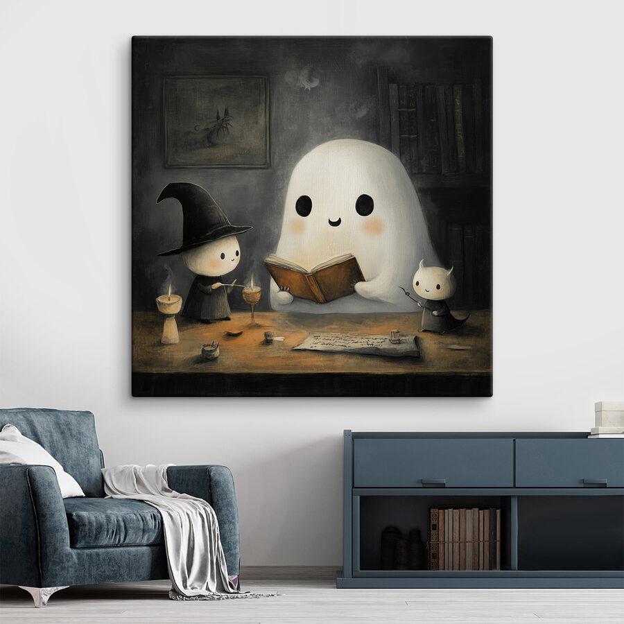 Sind Sie auf der Suche nach etwas Charme mit einer Prise Laune? Dann könnte dieser entzückende Leinwanddruck “Ghost Reading a Book with Two Little People” genau das Richtige für Sie sein. Stellen Sie sich vor: ein gemütliches, schwach beleuchtetes Zimmer, in dem ein freundliches Gespenst tief in ein Buch vertieft ist – zusammen mit zwei kleinen Begleitern. Es ist, als würde man in eine Gute-Nacht-Geschichte voller Magie und Wunder eintauchen. Perfekt für ein Kinderzimmer oder eine Leseecke, in der der Fantasie freien Lauf gelassen werden soll. Stellen Sie sich das Kichern und die neugierigen Fragen der Gäste vor. Es bringt eine bezaubernde Stimmung in jeden Raum und macht es unmöglich, nicht zu lächeln.