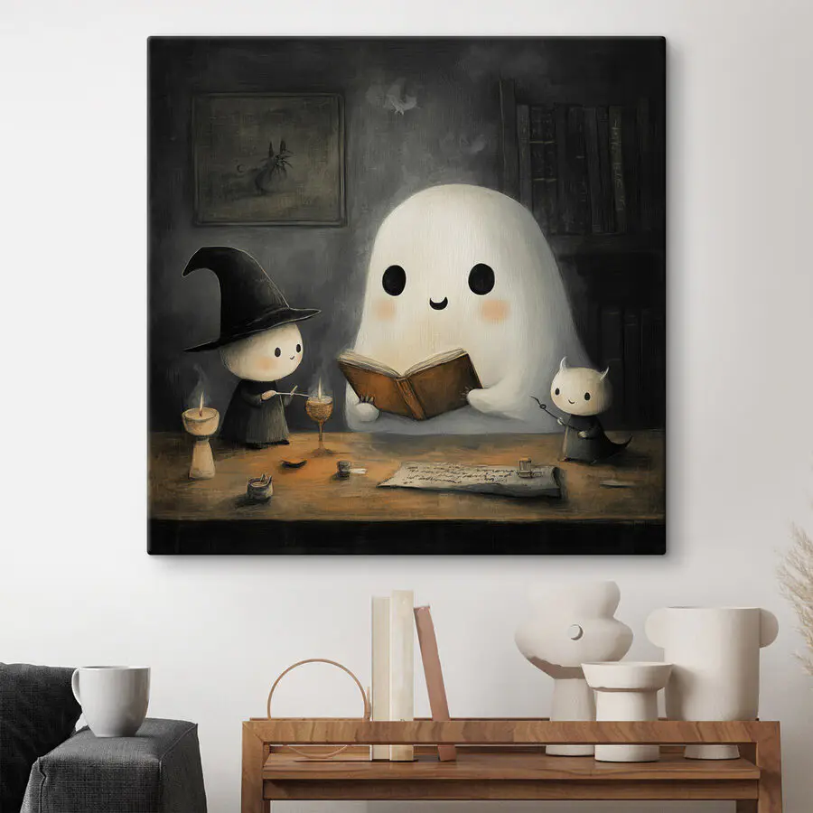 Sind Sie auf der Suche nach etwas Charme mit einer Prise Laune? Dann könnte dieser entzückende Leinwanddruck “Ghost Reading a Book with Two Little People” genau das Richtige für Sie sein. Stellen Sie sich vor: ein gemütliches, schwach beleuchtetes Zimmer, in dem ein freundliches Gespenst tief in ein Buch vertieft ist – zusammen mit zwei kleinen Begleitern. Es ist, als würde man in eine Gute-Nacht-Geschichte voller Magie und Wunder eintauchen. Perfekt für ein Kinderzimmer oder eine Leseecke, in der der Fantasie freien Lauf gelassen werden soll. Stellen Sie sich das Kichern und die neugierigen Fragen der Gäste vor. Es bringt eine bezaubernde Stimmung in jeden Raum und macht es unmöglich, nicht zu lächeln.