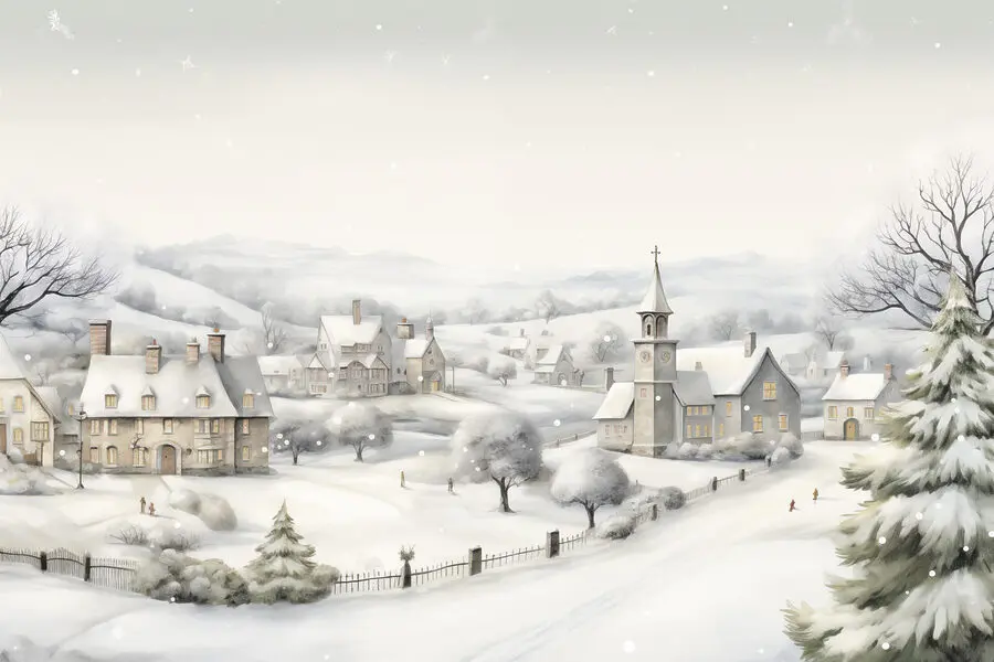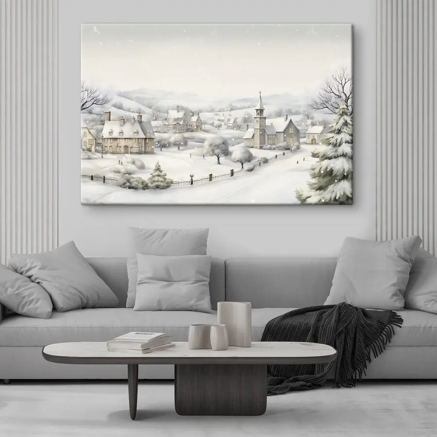 Verwandeln Sie Ihren Raum in ein Winterwunderland mit diesem bezaubernden Leinwanddruck, der ein verschneites Dorf zeigt. Es ist wie eine Momentaufnahme aus einem gemütlichen Märchen, in dem kleine Kirchenglocken bimmeln und Schneeflocken durch die Luft tanzen. Stellen Sie sich vor, Sie machen es sich mit einem warmen Getränk gemütlich, während Sie die malerischen Häuser und den sanft fallenden Schnee bestaunen. Das weckt ein Gefühl der Nostalgie – vielleicht denkt man an das Bauen von Schneemännern oder das Schlürfen eines heißen Kakaos am Feuer. Dieses Stück ist nicht nur Kunst, es ist ein Fenster zu friedlichen Momenten. Perfekt für jeden Raum, der einen Hauch von Winterzauber braucht!