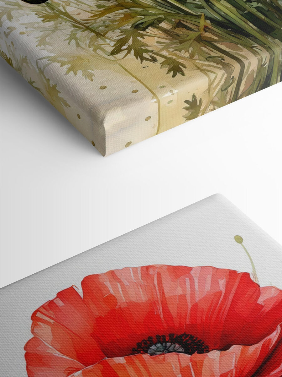 Stellen Sie sich vor, dass dieser Leinwanddruck – ein Gemälde mit leuchtend roten Blumen – Ihr Lieblingszimmer verschönert. Diese Blüten scheinen herauszuspringen, als würden sie gleich ihre süßen Geheimnisse preisgeben. Das auffällige Rot hat etwas, das die Aufmerksamkeit auf sich zieht – nicht zu auffällig, aber auf jeden Fall vorhanden. Es ist, als hätte man ein Stückchen eines sonnenverwöhnten Gartens an der Wand. Perfekt für die Tage, an denen man einfach ein bisschen mehr Farbe im Leben braucht. Wären diese Blumen nicht ein toller Gesprächsanlass? Außerdem müssen sie nicht gegossen werden!