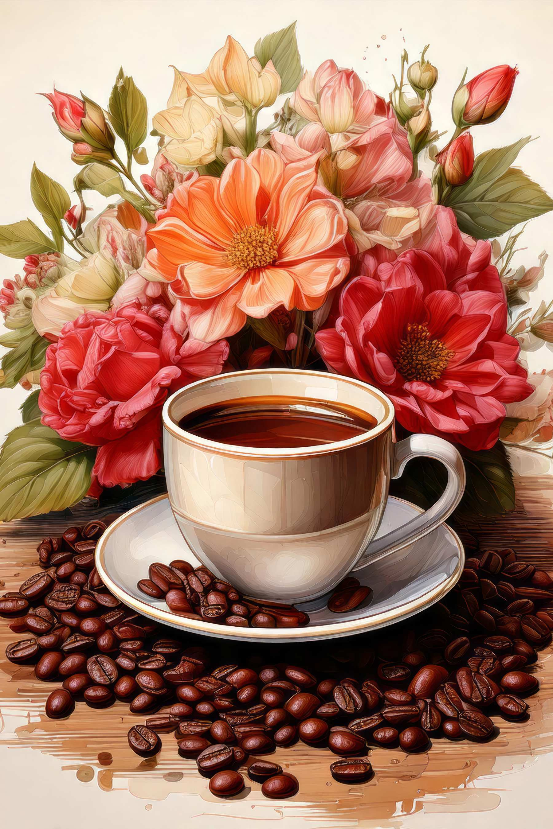 Schlürfen Sie aus der Tasse der Glückseligkeit mit diesem Leinwanddruck – “Cup of Coffee and Flowers”. Stellen Sie sich vor, Sie wachen jeden Morgen mit dieser herrlichen Szene auf – und der Duft strömt durch den Raum. Die warmen Töne des morgendlichen Kaffees flirten mit einem Ausbruch von lebendigen Blüten. Es ist wie eine Umarmung für Ihre Wände. Perfekt für jede Ecke, die einen Hauch von Laune und Wärme braucht, flüstert es “Nimm dir einen Moment Zeit, atme durch”. Ideal, um der Hektik zu entfliehen, mit einem Lächeln – ein sofortiger Stimmungsaufheller. Koffein für die Seele, kein Aufbrühen erforderlich.