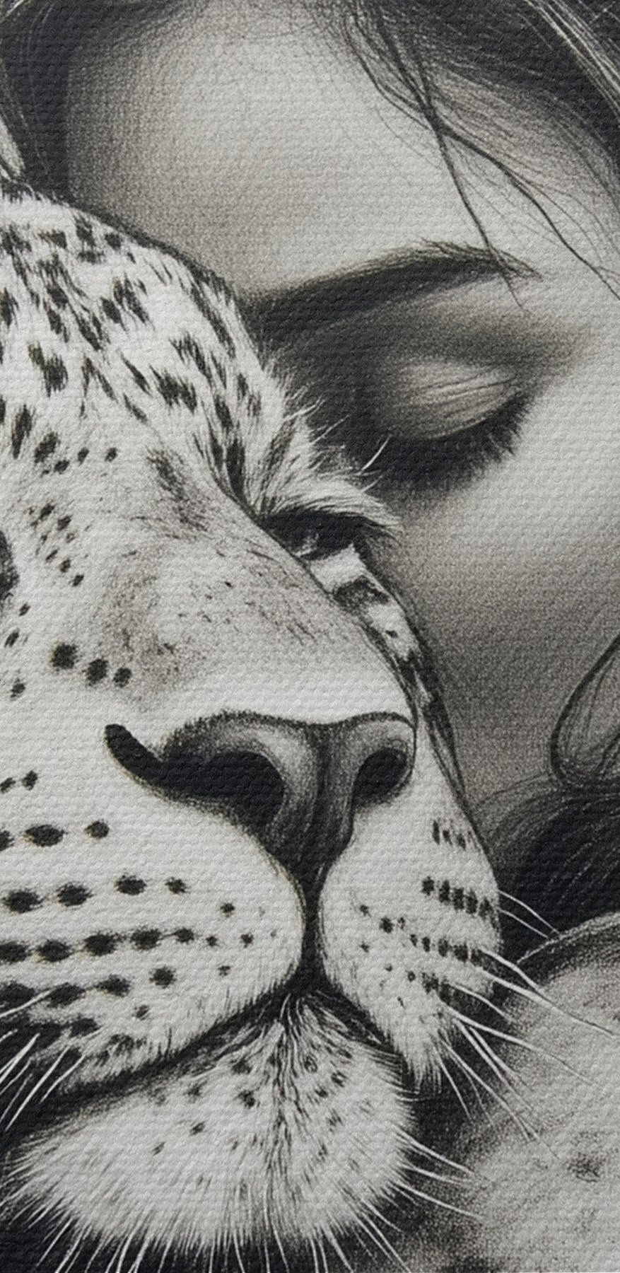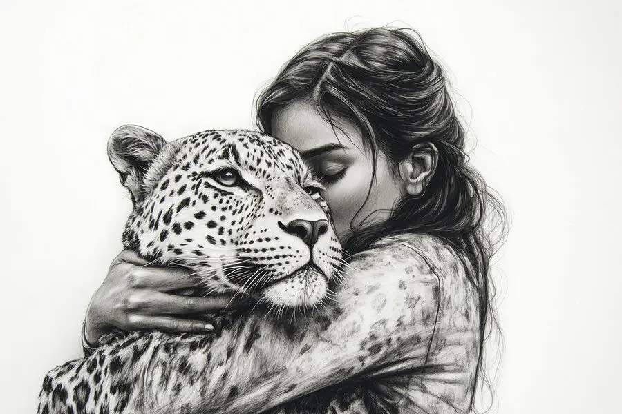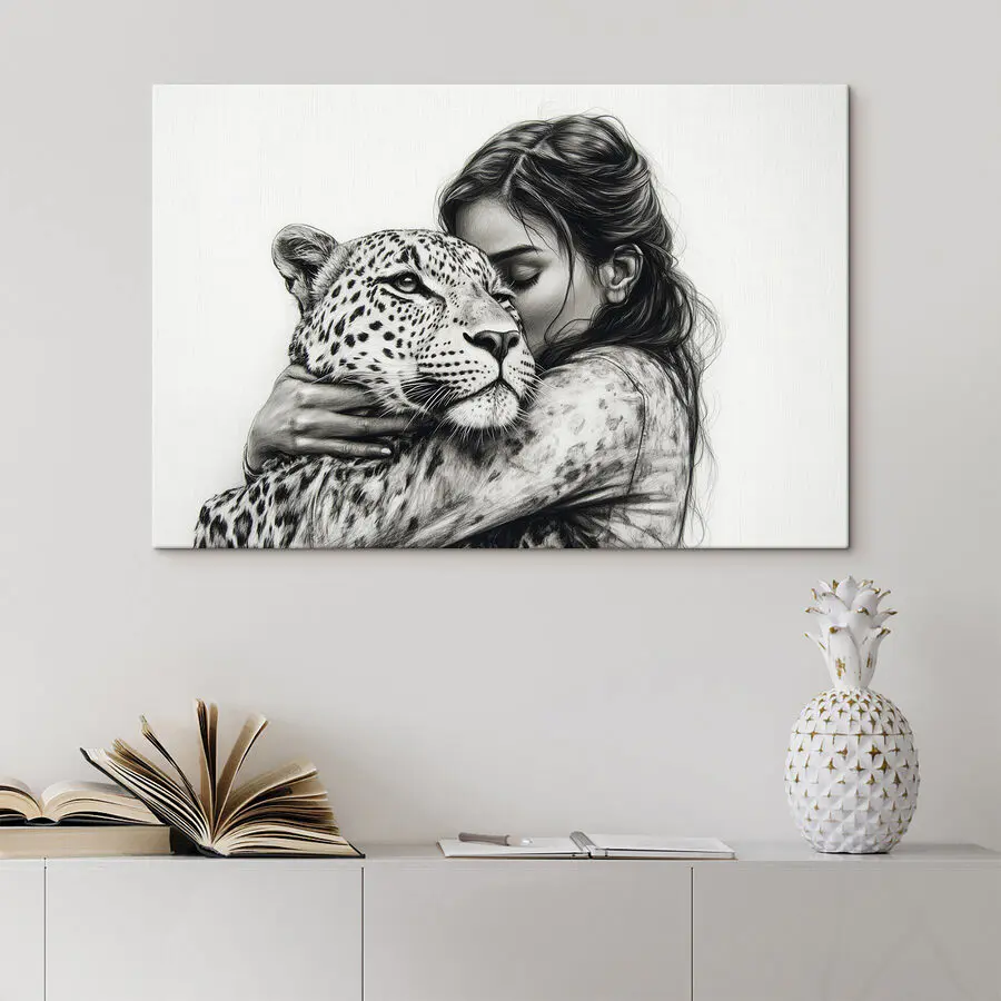 Verwandeln Sie jede Wand in ein Refugium der Wärme und wilden Schönheit mit diesem atemberaubenden Leinwanddruck, der eine Frau zeigt, die einen Leoparden umarmt. Es ist wie das Festhalten eines Moments, der Geschichten von Mut und Harmonie erzählt – wer hätte gedacht, dass Katzen so groß und kuschelig sein können? Stellen Sie sich vor, Sie betreten einen Raum und spüren die gemütliche Stimmung, die die sanften Töne verbreiten. Perfekt für Tierliebhaber oder alle, die ihrer Einrichtung eine unerwartete Wendung geben wollen. Vielleicht regt es sogar zu Gesprächen über Abenteuer im Dschungel oder das geheime Leben Ihres eigenen Haustiers an! Jeder Blick wird ein Gefühl der Verwunderung hervorrufen, als würde man eine weiche, pelzige Wolke umarmen.