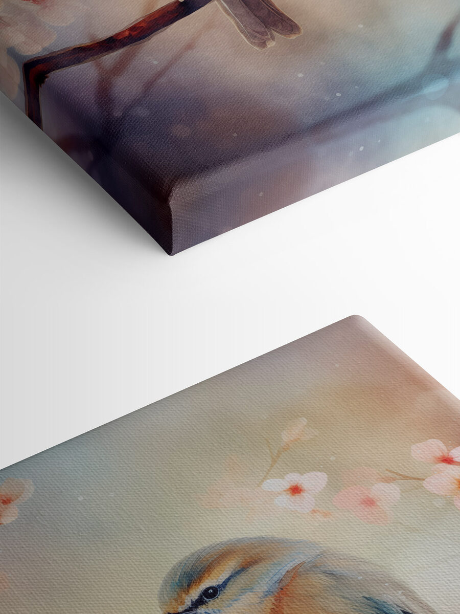 Lernen Sie das bezaubernde Leinwandbild “Zwei Vögel auf einem Ast” kennen – ein entzückendes Werk, das einen Hauch von Natur direkt in Ihren Wohnraum bringt. Stellen Sie sich diese süßen gefiederten Freunde vor, die mitten im Zwitschern gefangen sind und sich zwischen zarten Blüten einnisten. Es ist, als würden sie Geheimnisse austauschen oder ihr nächstes Abenteuer planen. Dieses Kunstwerk ist nicht nur für Vogelliebhaber geeignet, sondern verleiht jedem Raum einen gemütlichen Touch, von der Leseecke bis hin zu einer fröhlichen Küche.