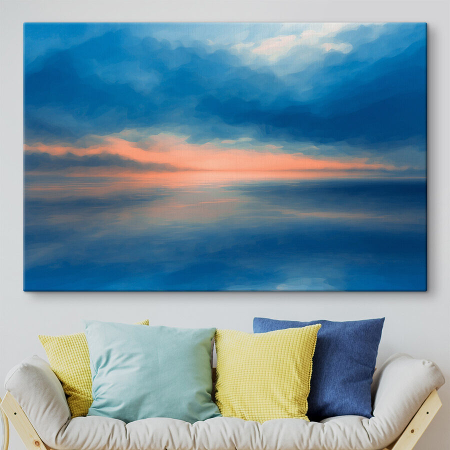 Gestalten Sie Ihren Raum mit diesem atemberaubenden Leinwandbild, das einen faszinierenden blauen und orangefarbenen Himmel mit Wolkenwirbeln zeigt. Stellen Sie sich vor, Sie kommen nach einem langen Tag nach Hause, sinken in Ihren Lieblingssessel und lassen sich von diesem farbenfrohen Bild in einen Sonnenuntergang am Meer entführen. Es ist wie ein Mini-Urlaub direkt an der Wand! Die beruhigenden Farben erinnern Sie an ruhige Strandtage oder Spaziergänge bei Sonnenuntergang an der Küste. Ob in einem gemütlichen Wohnzimmer oder in einem ruhigen Schlafzimmer, es wird Freude und Gespräche auslösen – perfekt für alle, die die Schönheit der Natur in ihrem Zuhause schätzen!