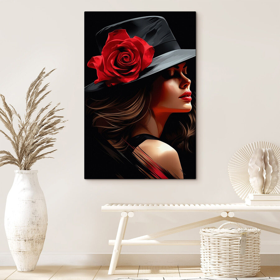 Darf ich vorstellen: die atemberaubende “Leinwanddrucke Frau mit einer Rose im Hut”. Dieses Kunstwerk strahlt Eleganz und einen Hauch von Skurrilität aus, perfekt für jeden, der sich nach einem Hauch von einzigartigem Dekor sehnt. Stellen Sie sich einen einladenden Raum vor, in dem Freunde Kaffee trinken und dieses Kunstwerk bewundern – jeder Blick enthüllt eine neue Ebene des Geheimnisses. Die üppige rote Rose hebt sich von ihrem schicken schwarzen Hut ab und verrät Geheimnisse über Mode und Romantik. Es ist die Art von Kunstwerk, die zu Geschichten anregt oder einfach nur ein anerkennendes Nicken hervorruft. Hängen Sie es in einem Wohnzimmer auf und beobachten Sie, wie es zum Gesprächsstoff wird, oder stellen Sie es in eine gemütliche Ecke für ruhige Momente der Besinnung. Eine Mischung aus Schönheit und Faszination, die jede Wand zum Strahlen bringt!