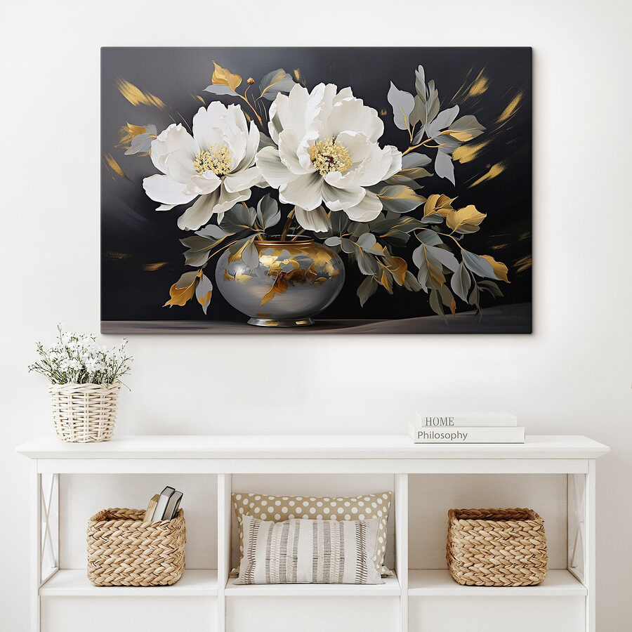 Verwandeln Sie Ihren Raum mit diesem herrlichen Leinwanddruck von Blumen in einer Vase. Stellen Sie sich vor, Sie wachen jeden Tag mit diesen atemberaubenden Blüten auf – wie ein frischer Blumenstrauß ohne Gießen und Sorgen! Die sanften Farben heben sich wunderbar von dem dunklen Hintergrund ab und schaffen eine kleine Ecke der Freude in jedem Raum. Perfekt über einer gemütlichen Leseecke oder als Schmuckstück im Wohnzimmer. Es ist wie eine sanfte Umarmung für Ihre Wände, die Wärme und einen Hauch von Natur verleiht, der sich einfach gut anfühlt. Diese Kunst macht jeden Blick ein wenig heller – wer würde das nicht wollen?