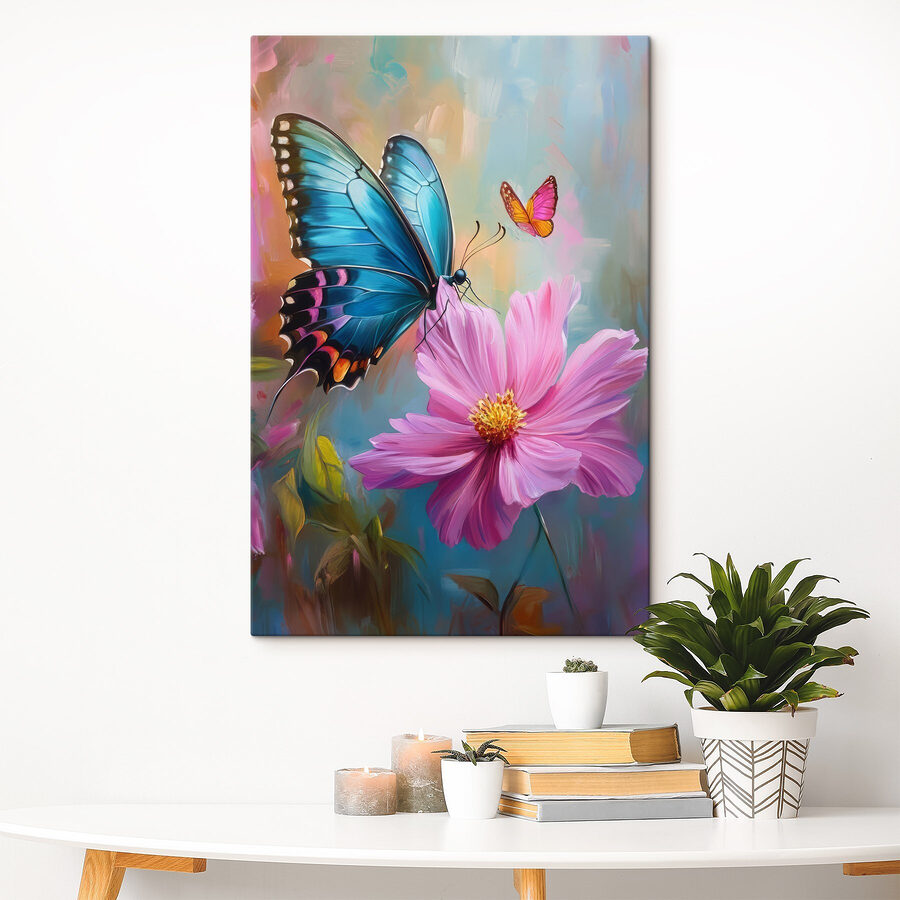 Verwandeln Sie jeden Raum mit dem bezaubernden “Leinwandbild Schmetterling auf einer Blume”. Stellen Sie sich vor, Sie betreten Ihren Raum und werden von leuchtenden Blau- und Rosatönen und einem Schmetterling begrüßt, der zart auf einer blühenden Blume thront. Es ist, als ob die Natur beschlossen hätte, auf einen Plausch in Ihr Wohnzimmer zu kommen! Dieses Stück fängt die Schönheit und Launenhaftigkeit der Natur ein und hebt sofort die Stimmung. Es eignet sich perfekt für eine gemütliche Sitzecke oder sogar ein Kinderzimmer und lädt zu Tagträumen von sonnigen Gärten und entspannten Nachmittagen ein. Also, hängen Sie es auf, atmen Sie tief durch und lassen Sie die Schönheit des Frühlings das ganze Jahr über Ihr Zuhause erfüllen!