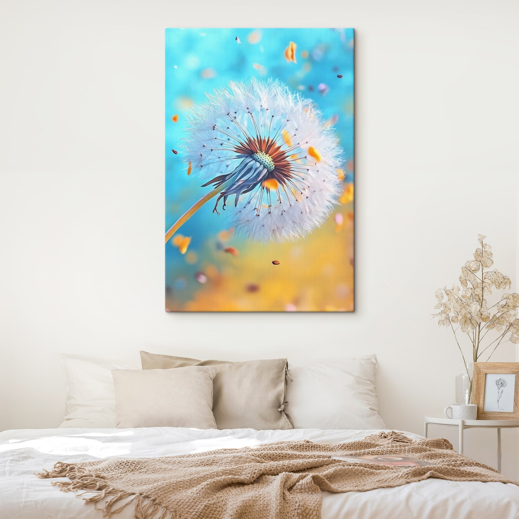 Verwandeln Sie Ihren Raum mit dem wunderschönen “Wandbilder Dandelion with Seeds Flying in the Air”. Dieses atemberaubende Werk fängt den zarten Moment ein, in dem die Samen des Löwenzahns in die Luft fliegen und ein Gefühl der Freiheit und des Staunens hervorrufen. Stellen Sie sich vor, Sie betrachten es an einem hektischen Tag; es ist wie eine sanfte Erinnerung daran, innezuhalten und die kleinen Dinge zu schätzen. Die leuchtenden Farben kommen an jeder Wand gut zur Geltung und machen es zu einem perfekten Gesprächsanlass. Es ist nicht nur Kunst – es ist ein kleiner Hauch von Magie in Ihrem Zuhause. Perfekt für Naturliebhaber oder alle, die einen Hauch von Skurrilität brauchen, wird diese Leinwand sicherlich ein Lächeln und Tagträume hervorrufen!