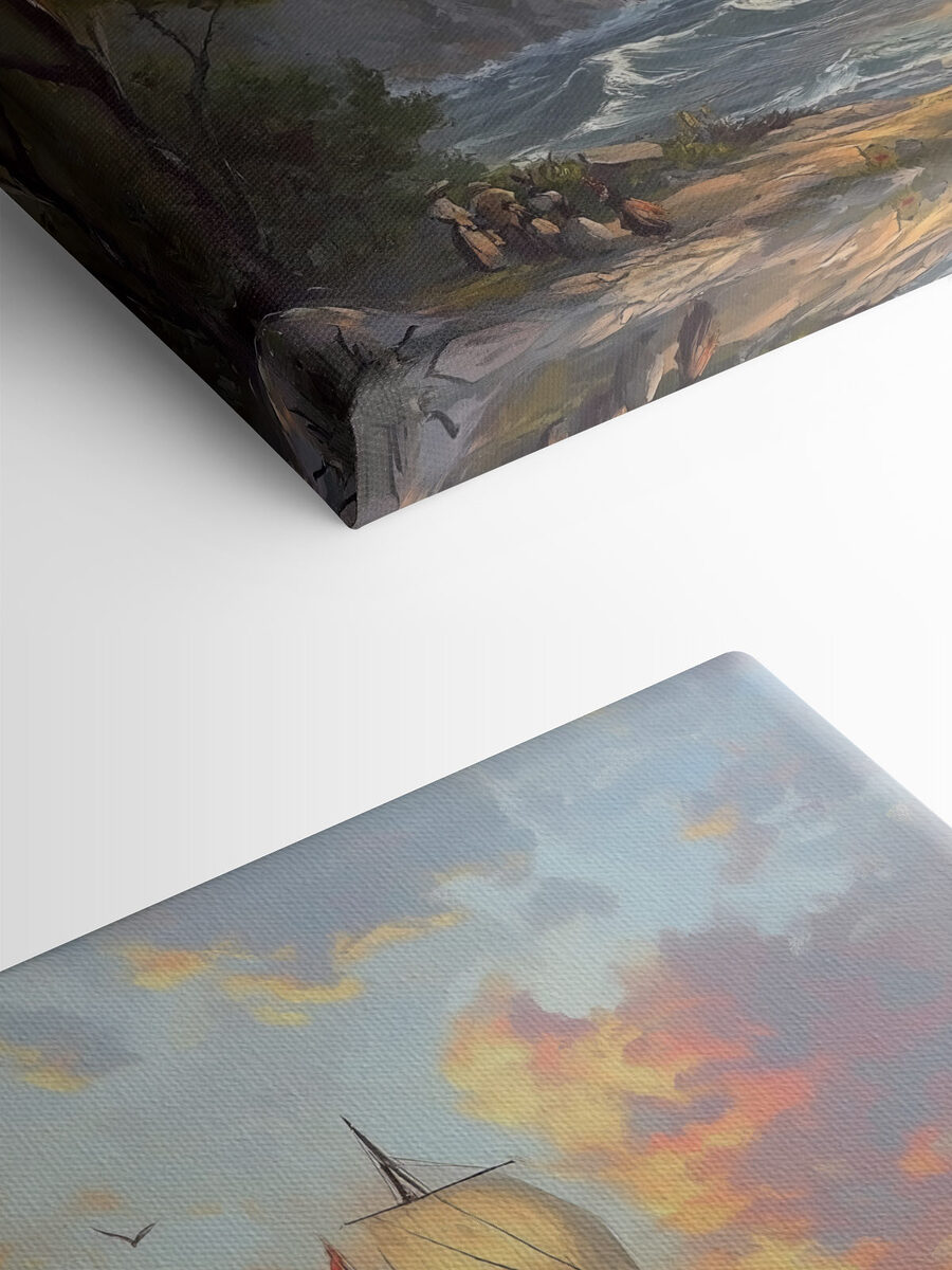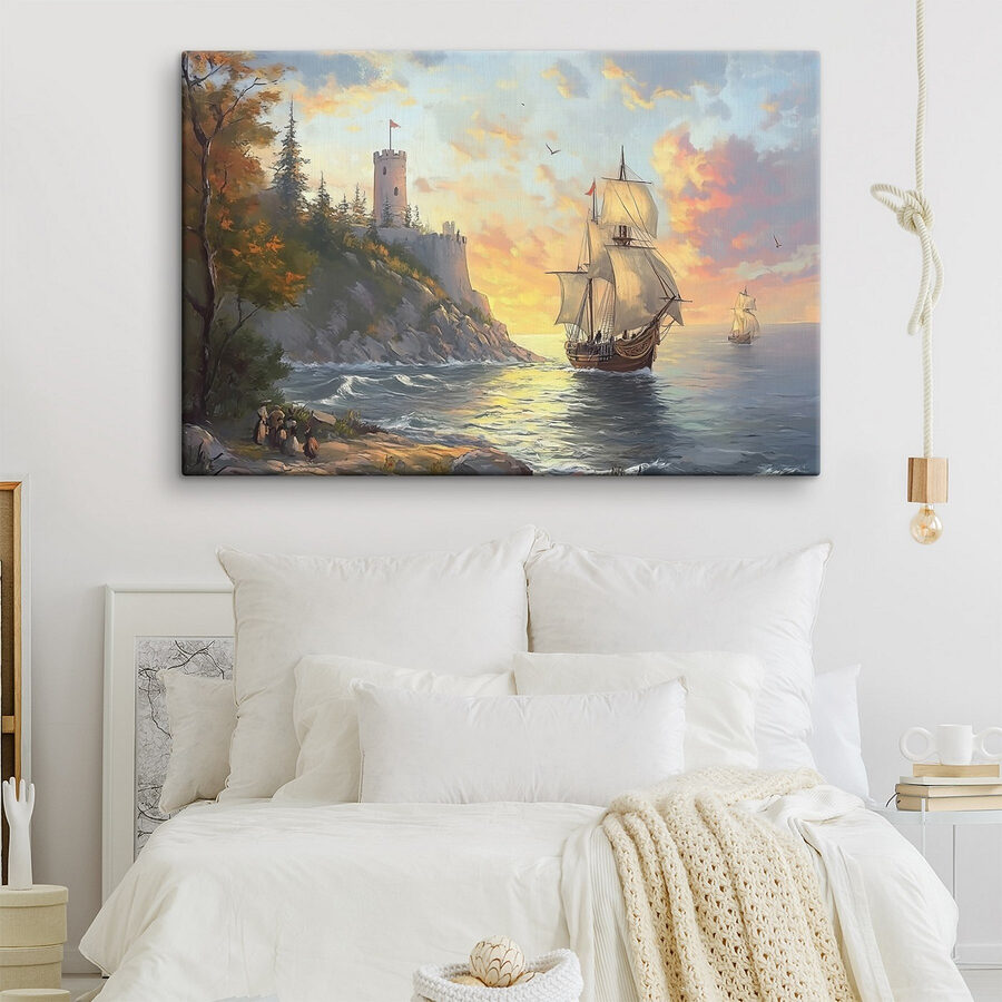 Stellen Sie sich dieses atemberaubende Leinwandbild an Ihrer Wand vor, das ein Schiff zeigt, das anmutig über schimmernde Gewässer unter einem atemberaubenden Himmel segelt. Es ist wie ein Fenster zum Meer und bringt ein Stückchen Abenteuer direkt in Ihr Wohnzimmer. Stellen Sie sich vor, wie Ihre Freunde vorbeischlendern und sich in den Farben verlieren – sanfte Blautöne, warme Orangetöne und überall ein Hauch von Natur. Perfekt für die eine Wand, die ein wenig Liebe braucht, oder als beruhigender Blickfang in einer gemütlichen Ecke, verleiht dieses Stück nicht nur Charme, sondern lädt auch zu Tagträumen von fernen Küsten und Meeresbrisen ein. Auf jeden Fall ein Gesprächsanlass!