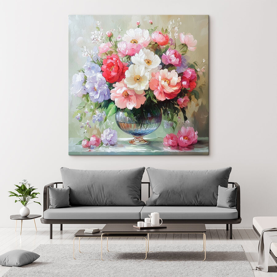 Verschönern Sie jeden Raum mit diesem atemberaubenden Leinwanddruck von Blumen in einer Vase. Es ist, als ob man sich einen kleinen Garten ins Haus holt, ohne einen grünen Daumen oder eine Gießkanne zu benötigen – Punkt! Die leuchtenden Farben und die sanften, malerischen Striche laden zu Wärme und Fröhlichkeit ein – perfekt für die Momente, in denen Sie ein bisschen Charme der Natur brauchen. Stellen Sie sich vor, Sie laden Freunde ein, die es bewundern und sich über Sommertage unterhalten wollen. Ein optischer Leckerbissen, der selbst an verregneten Nachmittagen ein Lächeln ins Gesicht zaubert. Wer könnte da schon nein sagen?