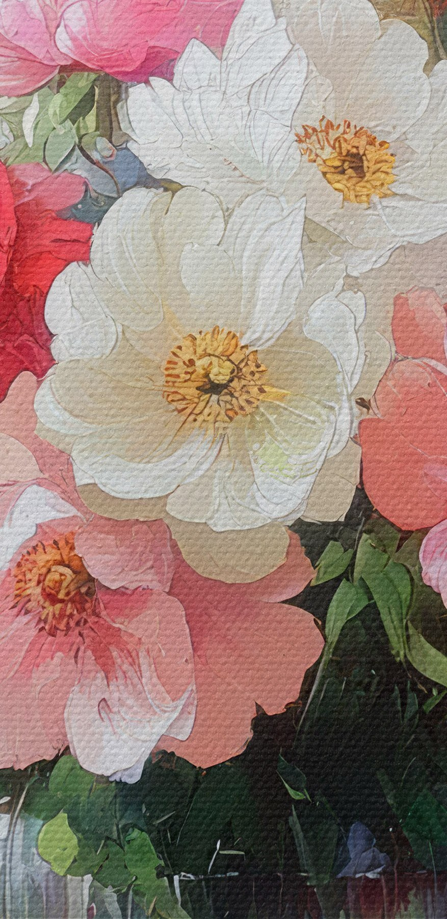 Verschönern Sie jeden Raum mit diesem atemberaubenden Leinwanddruck von Blumen in einer Vase. Es ist, als ob man sich einen kleinen Garten ins Haus holt, ohne einen grünen Daumen oder eine Gießkanne zu benötigen – Punkt! Die leuchtenden Farben und die sanften, malerischen Striche laden zu Wärme und Fröhlichkeit ein – perfekt für die Momente, in denen Sie ein bisschen Charme der Natur brauchen. Stellen Sie sich vor, Sie laden Freunde ein, die es bewundern und sich über Sommertage unterhalten wollen. Ein optischer Leckerbissen, der selbst an verregneten Nachmittagen ein Lächeln ins Gesicht zaubert. Wer könnte da schon nein sagen?