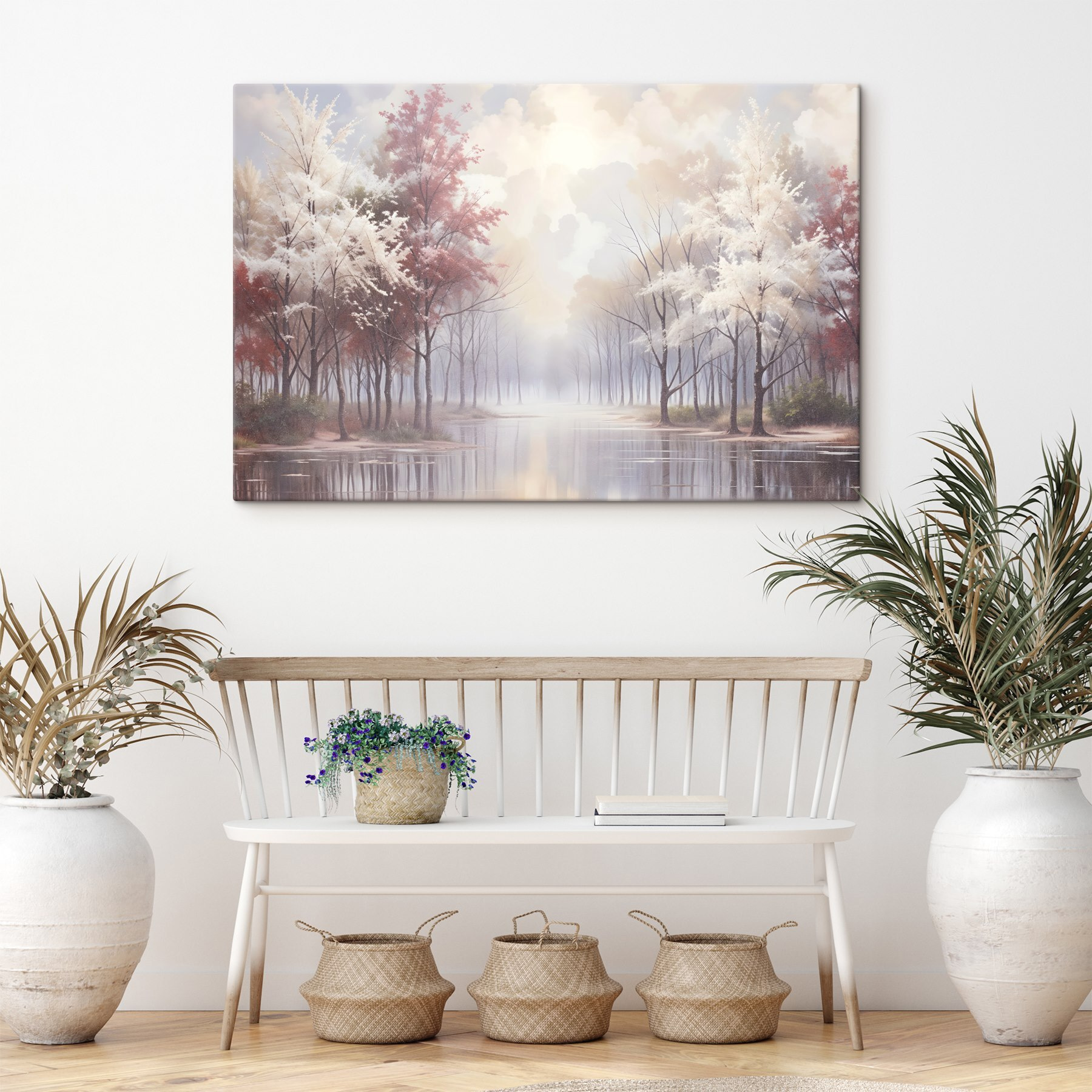 Verwandeln Sie Ihre Wände mit diesem atemberaubenden Leinwanddruck “Gewässer mit Bäumen und bewölktem Himmel”. Stellen Sie sich das vor: ein ruhiges Gewässer, umgeben von anmutigen Bäumen, über dem verträumte Wolken hängen – es ist, als würde die Natur Geheimnisse flüstern. Stellen Sie sich vor, Sie entspannen sich in Ihrem Wohnzimmer, und die sanften Farben lassen Sie nach einem langen Tag ein wenig zur Ruhe kommen. Es schafft eine gemütliche Atmosphäre, perfekt zum Träumen oder Erzählen. Perfekt für alle, die sich nach einem Hauch von Ruhe in ihrem Raum sehnen, und vielleicht weckt dieses Stück sogar ein wenig Fernweh. Wer weiß, vielleicht entfacht es sogar ein Gespräch über Ihr nächstes Outdoor-Abenteuer! Holen Sie sich also mit diesem Kunstwerk ein Stück Natur ins Haus – es ist im Grunde eine Eintrittskarte in die Natur, nur ohne die Mücken!