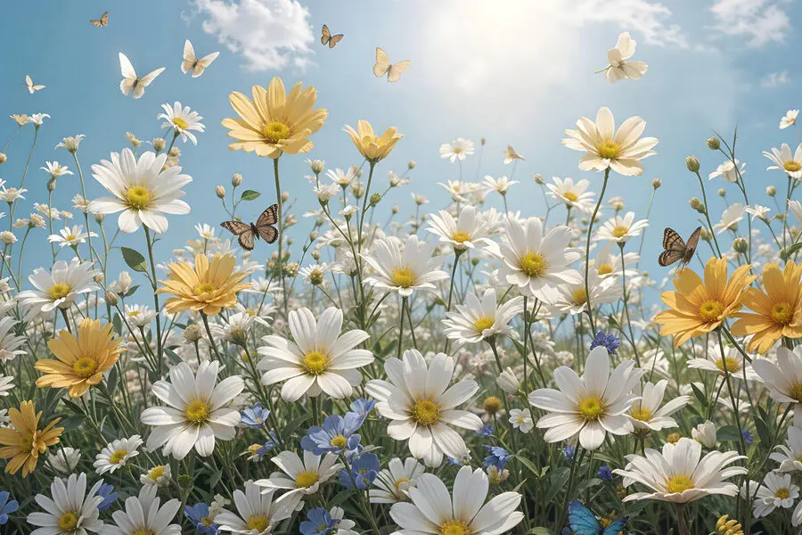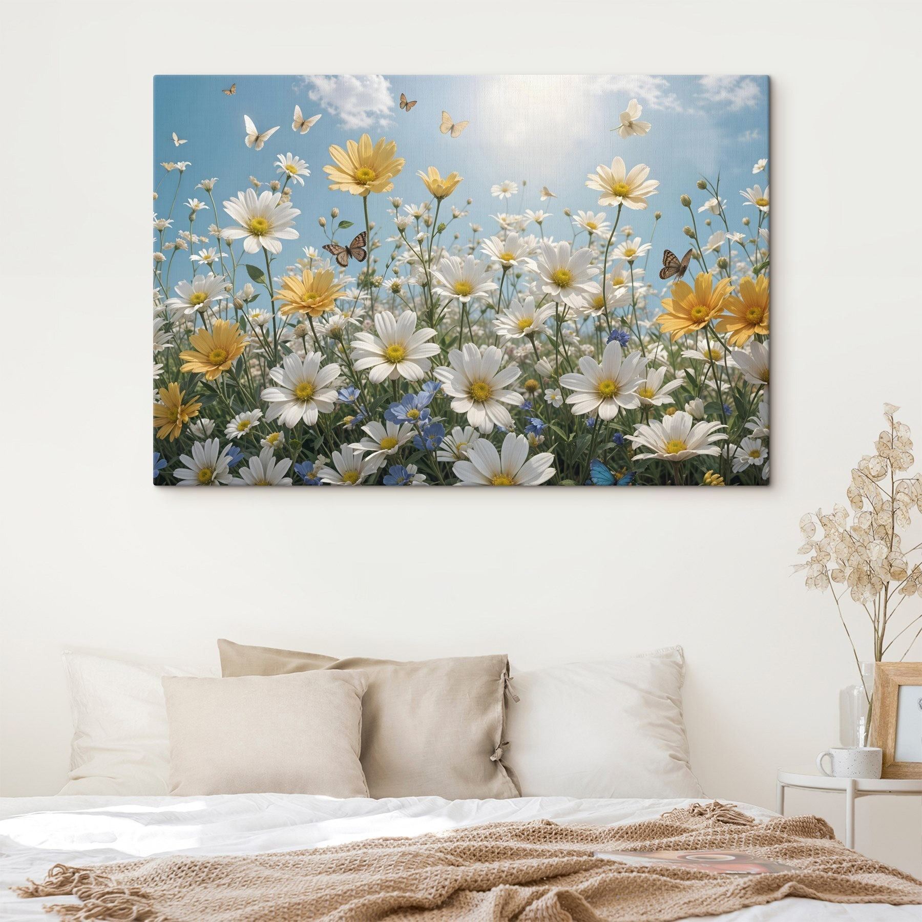 Stellen Sie sich vor, Sie treten in einen sonnenbeschienenen Garten, in dem Schmetterlinge um leuchtende Blumen tanzen. Dieser Leinwanddruck “Gruppe von Schmetterlingen, die über ein Blumenfeld fliegen” fängt diesen fröhlichen Moment perfekt ein. Die fröhlichen Blüten scheinen die Geheimnisse des Frühlings zu flüstern, während die Schmetterlinge einen Hauch von Laune verbreiten – wie die kleinen Künstler der Natur.