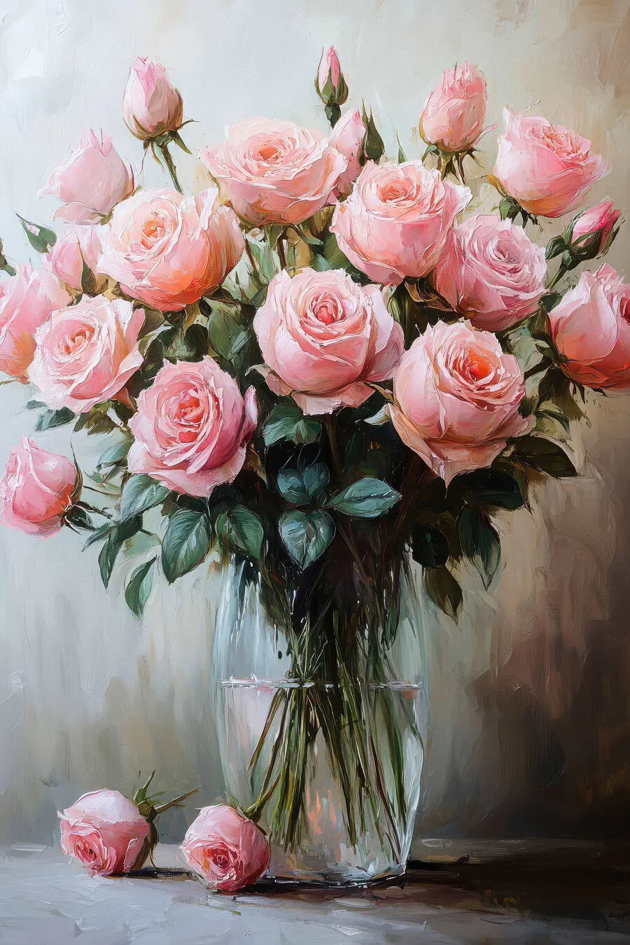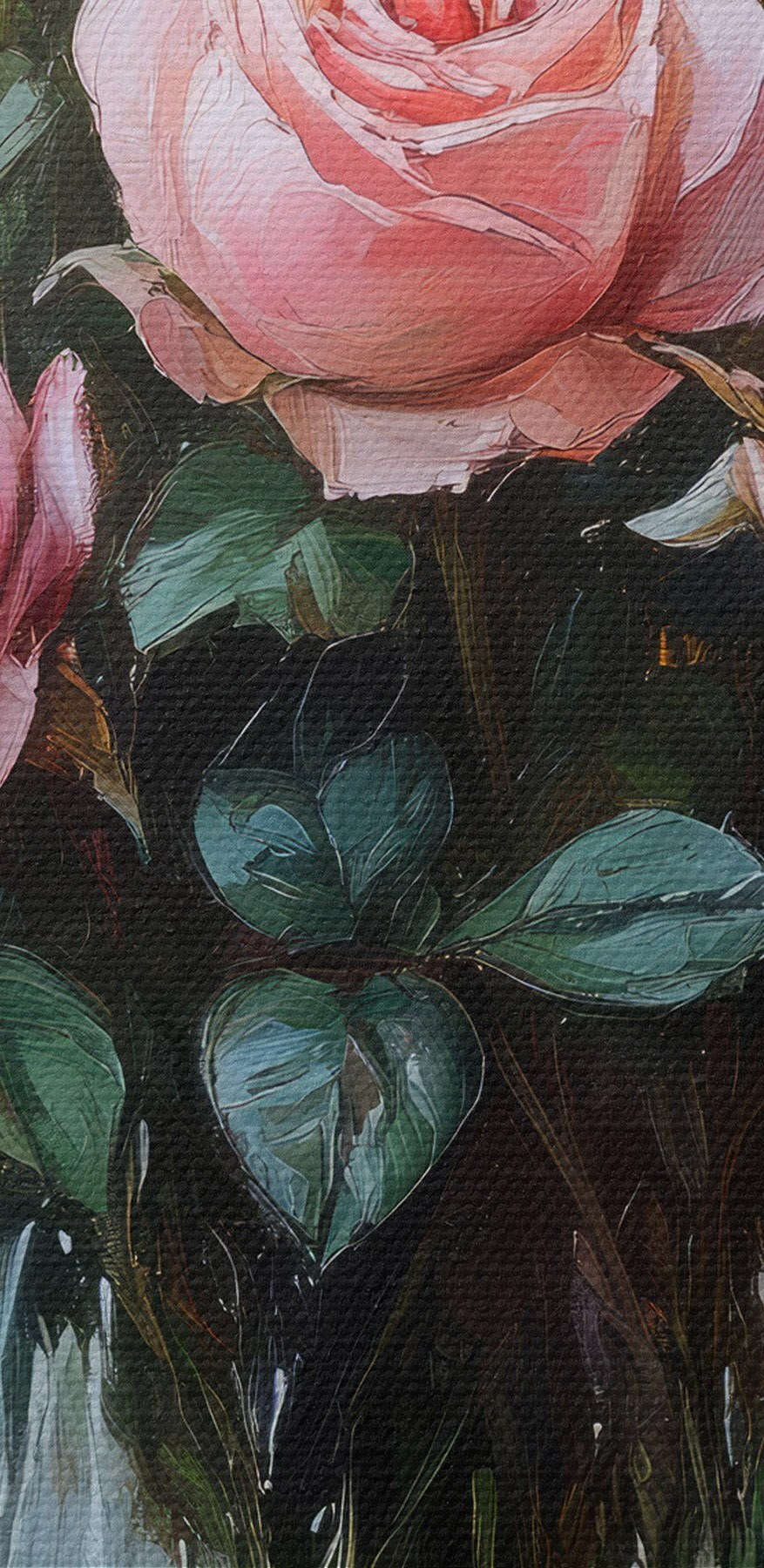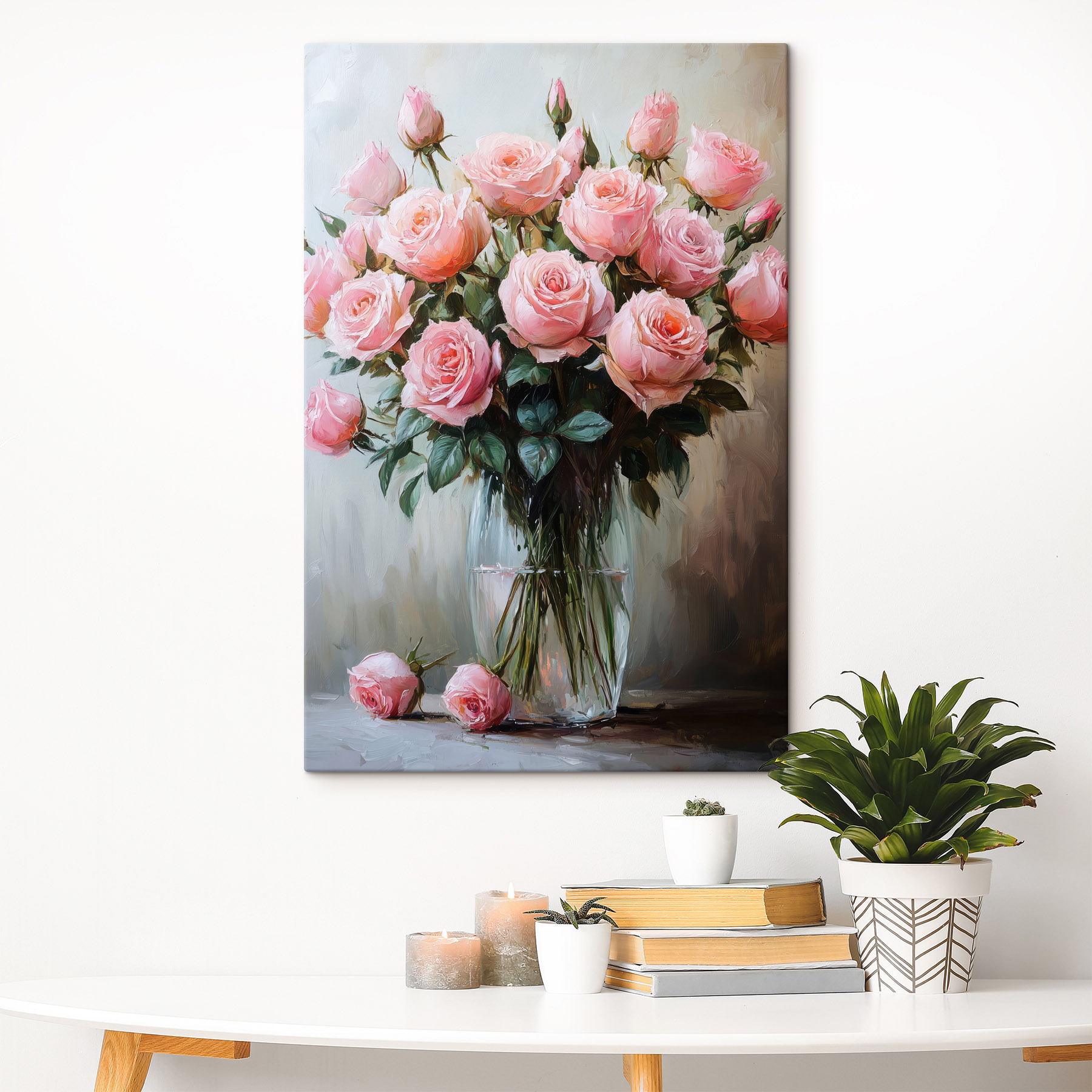 Dieser wunderschöne Leinwanddruck mit rosa Rosen in einer Vase verschönert jeden Raum. Es ist wie ein kleiner Frühlingsausbruch, sogar mitten im Winter! Stellen Sie sich vor, Sie gehen daran vorbei und nehmen einen Hauch von Blumenduft wahr – okay, vielleicht riecht es nicht, aber es sieht sehr einladend aus. Die sanften Rosatöne und das satte Grün schaffen eine beruhigende Atmosphäre, die perfekt für eine gemütliche Leseecke oder eine fröhliche Küche ist. Außerdem ist sie ein toller Gesprächsanlass – wer plaudert nicht gern über Blumen? Dieses Stück versprüht Wärme, Charme und einen Hauch von Romantik. Jeder, der es sieht, wird sich ein bisschen glücklicher fühlen, garantiert!