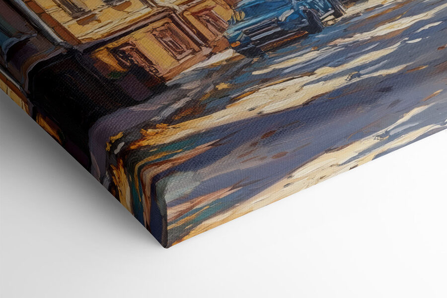 Das Bild eignet sich perfekt für ein Wohnzimmer oder ein Büro zu Hause, da es eine aufmunternde Atmosphäre schafft und gleichzeitig ein wenig Nostalgie für die Stadt weckt. Ob bei einer gemütlichen Kaffeepause oder einer kreativen Brainstorming-Sitzung, dieses Stück macht jeden Moment zu etwas Besonderem und erinnert Sie an die Schönheit der alltäglichen Szenen. Freunde werden vorbeikommen, es bewundern und vielleicht sogar zu einem spontanen Roadtrip inspirieren!
