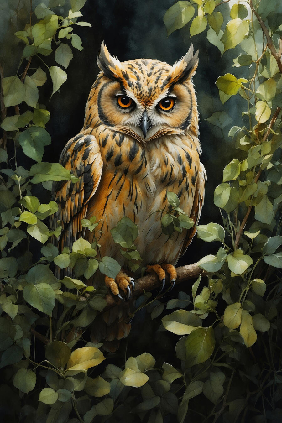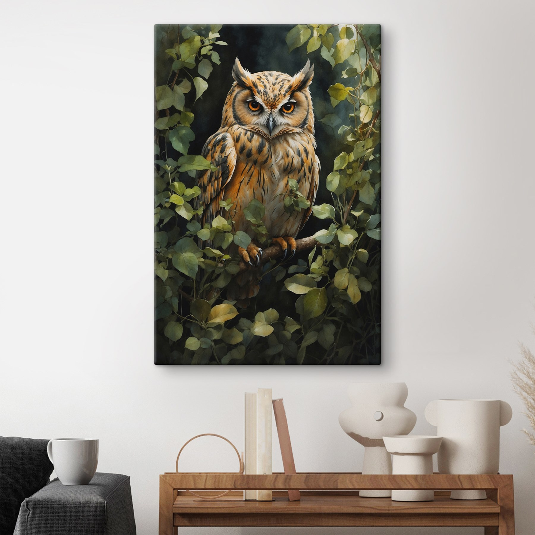 Lernen Sie Ihren neuen Lieblings-Wandbegleiter kennen – einen atemberaubenden Leinwanddruck mit einer Eule, die anmutig auf einem Ast sitzt, umgeben von üppigem Grün. Dieses bezaubernde Stück ist nicht nur Kunst, sondern holt die Natur direkt in Ihr Wohnzimmer. Stellen Sie sich gemütliche Abende mit dieser majestätischen Kreatur vor, die den Raum im Auge behält. Die leuchtenden Farben und filigranen Details lassen es lebendig erscheinen, fast so, als könnte es Sie nach Einbruch der Dunkelheit anschreien.