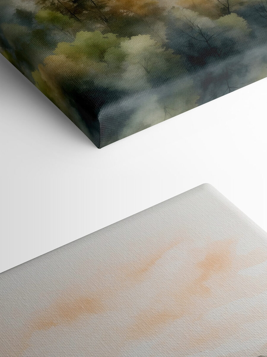 Gestalten Sie Ihren Raum mit diesem atemberaubenden Aquarellbild, das Berge und Bäume in einem verträumten Dunst einfängt. Stellen Sie sich vor, Sie schlürfen Ihren Morgenkaffee, eingewickelt in eine Decke, während sanfte Grün- und Orangetöne über Ihre Wände fließen und Sie sanft an friedliche Wanderungen im Wald erinnern. Diese ruhige Atmosphäre lässt Sie sich sofort wohlfühlen – wie ein kleiner Ausflug in den Alltag. Perfekt für ein gemütliches Wohnzimmer oder ein ruhiges Schlafzimmer, lädt dieses Stück die Natur ins Haus ein. Wer wünscht sich nicht ein kleines Stückchen Waldmagie, um den Tag zu verschönern?
