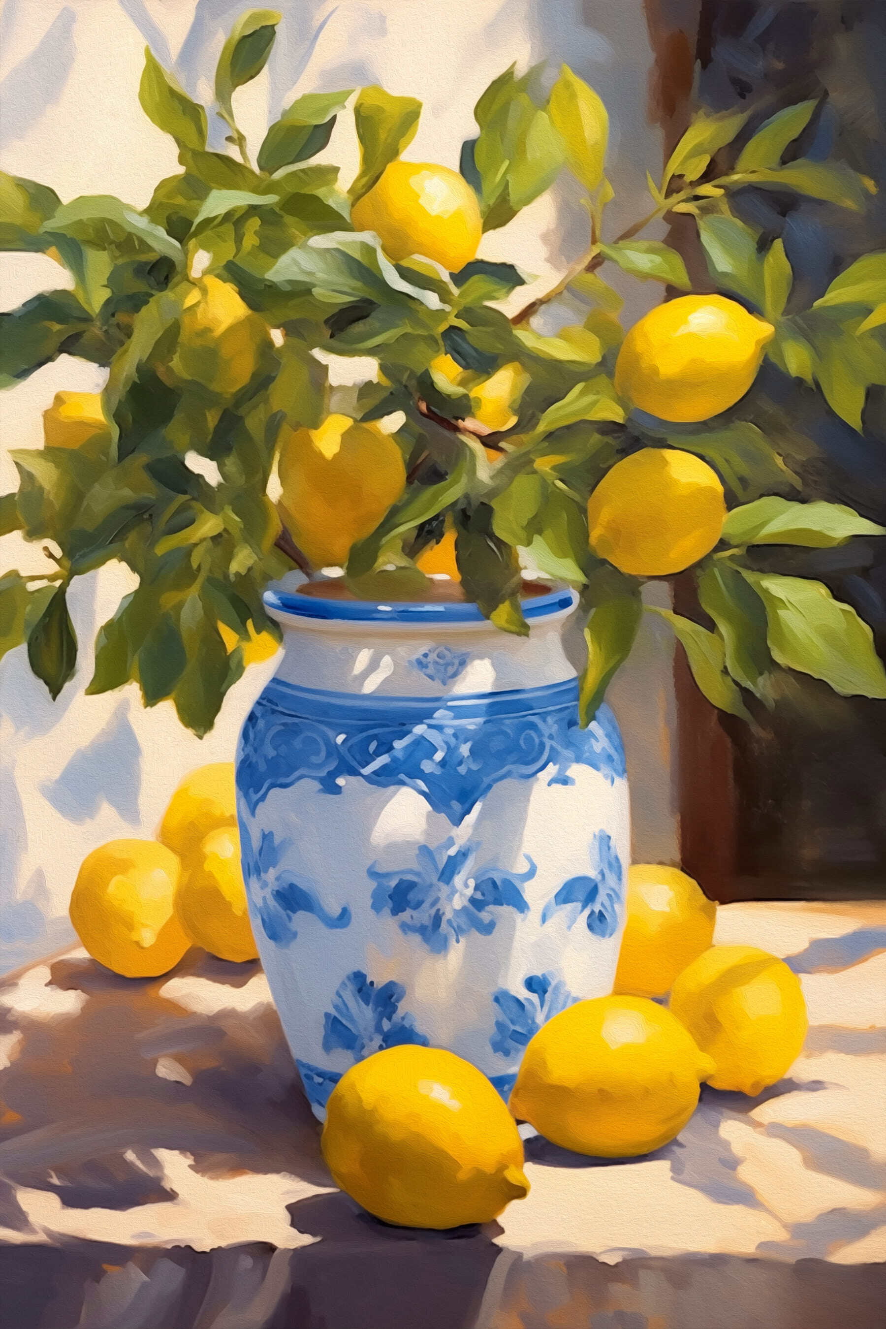 Dieser lebendige Leinwanddruck mit fröhlichen Zitronen in einer bezaubernden Vase bringt jeden Raum zum Strahlen. Es ist, als hätte man ein Stückchen Sonnenschein direkt in seinem Wohnzimmer! Dieses Bild fängt einen Moment ein, der sich frisch anfühlt – stellen Sie sich einfach vor: ein sonniger Nachmittag, vielleicht ein Limonadenstand in der Nähe. Die leuchtenden Gelbtöne heben sich von der zartblauen Vase ab und erzeugen eine Wärme, die zum Lächeln einlädt. Die Vase eignet sich perfekt für die Küche oder den Essbereich und weckt Erinnerungen an sommerliche Picknicks und gemütliche Brunches. Hängen Sie es auf, und plötzlich fühlt sich jeder Tag ein bisschen süßer an.
