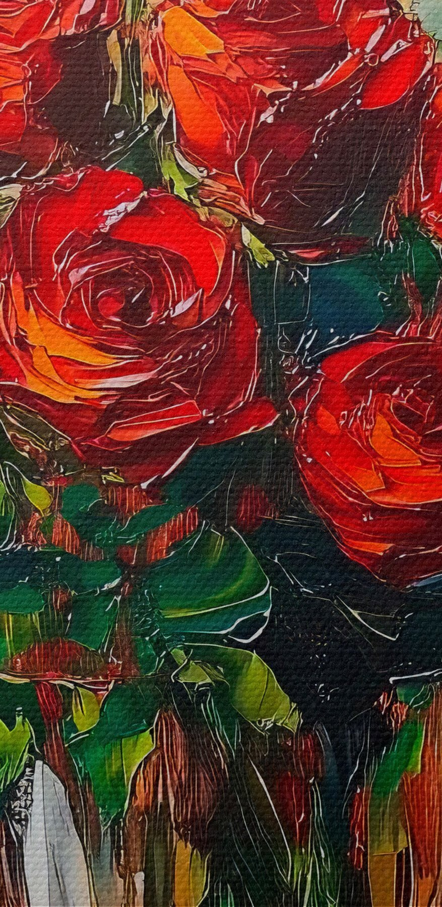 Dieser atemberaubende Leinwanddruck mit einem leuchtenden Strauß roter Rosen verschönert jeden Raum. Es ist, als hätte man ein kleines Stück Natur direkt an der Wand, das Wärme und gute Laune verbreitet. Stellen Sie sich vor, dass Sie beim Vorbeigehen einen Blick auf diese satten, tiefen Rottöne erhaschen – und plötzlich fühlt sich der Winter nicht mehr ganz so kalt an. Perfekt für ein gemütliches Wohnzimmer oder ein aufmerksames Geschenk, das ausdrückt: “Ich mag dich”. Und wer braucht diese Schönheiten schon zu gießen? Keine unordentlichen Blütenblätter oder dornige Überraschungen, nur pure Farbe und Charme, die die Stimmung heben und ein Lächeln hervorrufen. Eine Leinwand, die wirklich spricht!